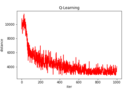 Q-learning得到的最短路线: [1, 28, 6, 12, 9, 26, 29, 3, 5, 21, 2, 20, 10, 4, 15, 18, 14, 22, 17, 11, 19, 25, 7, 23, 27, 8, 24, 16, 13, 1]