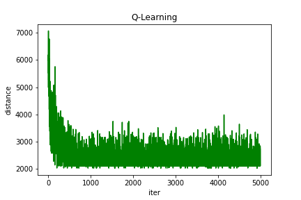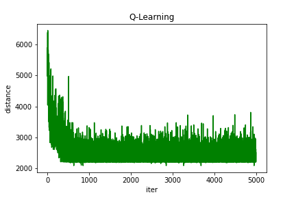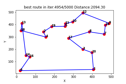 Q-learning得到的最短路线: [1, 20, 3, 17, 8, 7, 15, 9, 12, 10, 11, 5, 19, 2, 4, 18, 13, 14, 16, 6, 1]