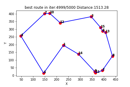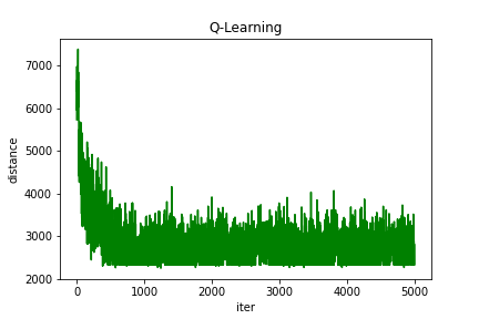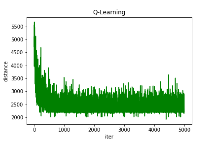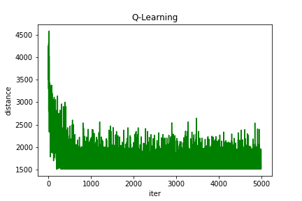 Q-learning得到的最短路线: [1, 14, 9, 11, 2, 8, 13, 6, 15, 3, 12, 10, 7, 4, 5, 1]