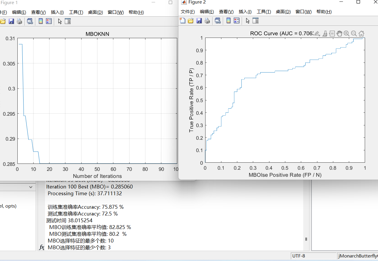 基于帝王蝶MBO优化的特征选择分类KNN算法在机器学习领域中,特征选择是一个重要而具有挑战性的问题。特征选择的目的是从原始特征集中,选择出对分类性能有显著影响的特征子集。近年来,基于元启发式算法的特征选择方法备受关注,并取得了一些显著的研究成果。