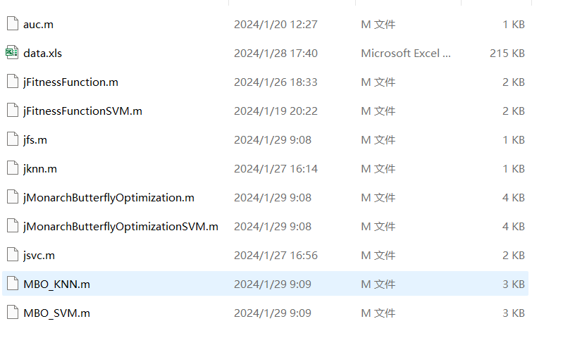 在特征选择问题中,基于帝王蝶MBO优化的特征选择分类KNN算法被提出。该算法通过使用MBO算法来选择最佳特征子集,并结合K最近邻(K-Nearest Neighbor,KNN)算法来实现分类任务。具体来说,MBO算法在搜索特征子集的过程中,通过优化目标函数来寻找最佳的特征组合。