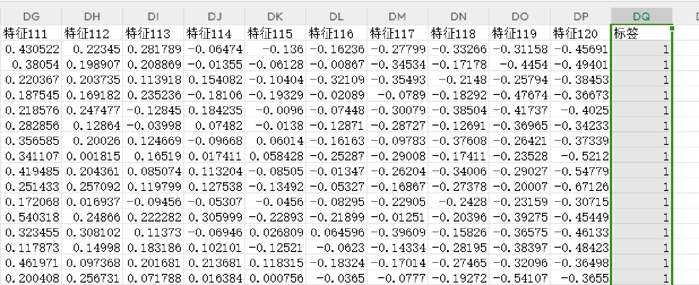 数据格式:一行一个样本,最后一列为样本所属的故障类型标签
