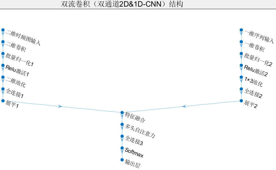 1、双流卷积:将一维时序信号和二维图像融合,可以综合利用不同模态的信息,从而更全面地描述数据的特征。这有助于提取更丰富、更有区别性的特征,从而提高故障识别的准确性,仅需原始故障波形数据,即可将一维序列转化为二维cwt时频图像。