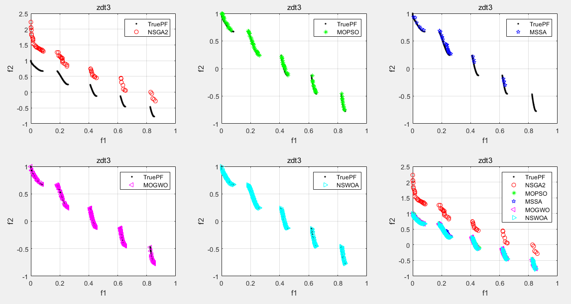 %一共9个多目标测试函数1-9分别是: zdt1 zdt2 zdt3 zdt4 zdt6 Schaffer Kursawe Viennet2 Viennet3