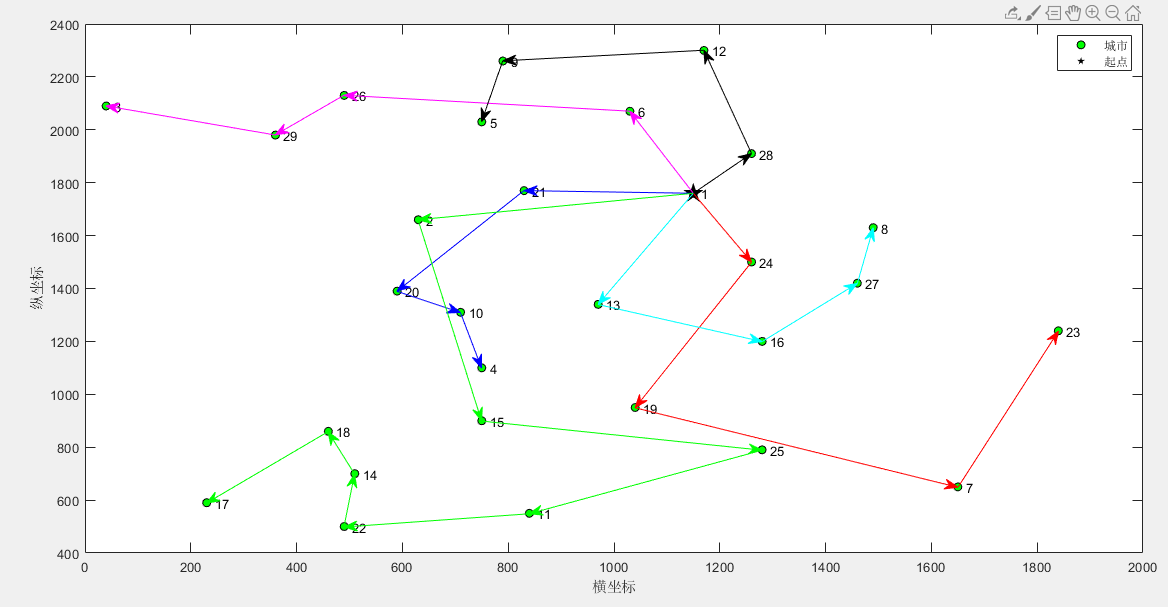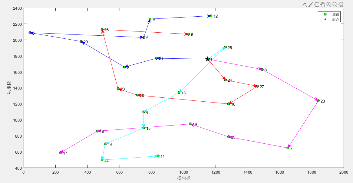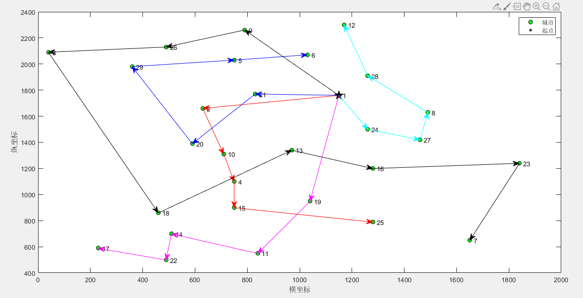 第1个旅行商的路径:1->24->27->16->10->20->26->6