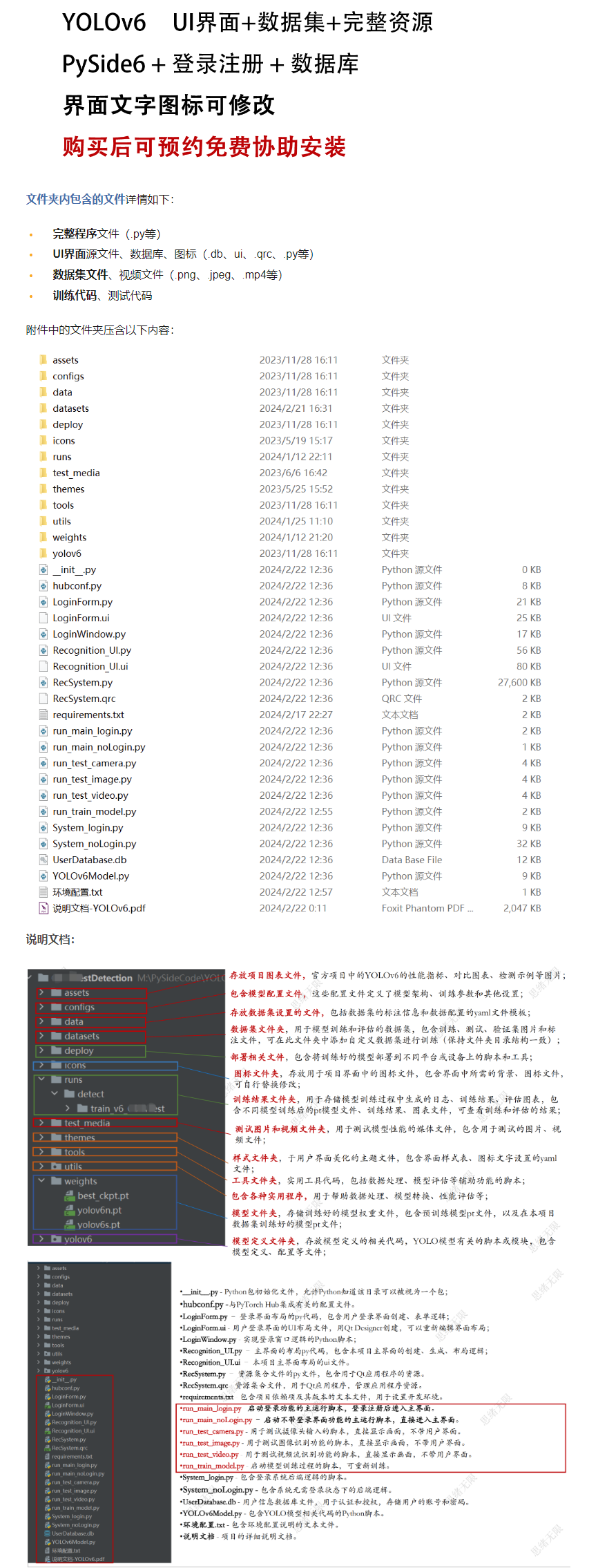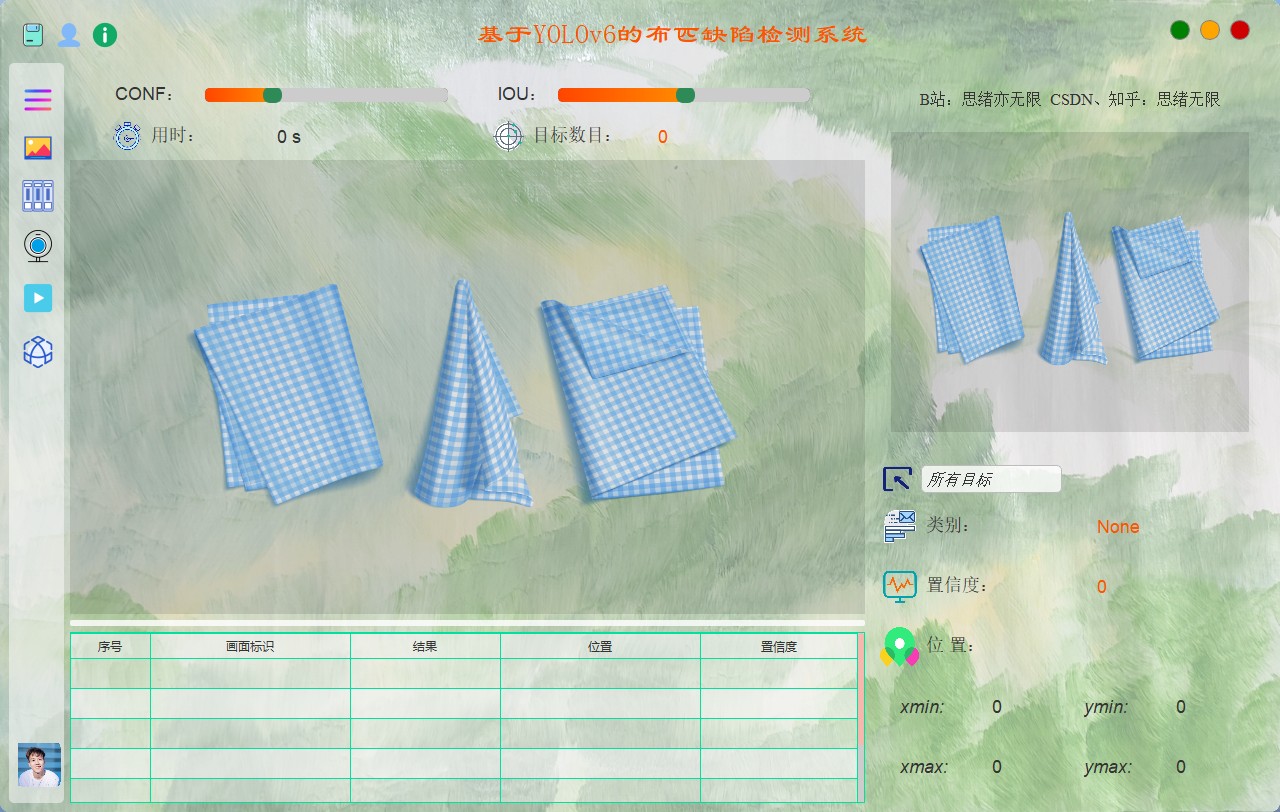 此代码资源包为本人在 CSDN 、知乎、博客园等平台上分享的博文:基于YOLOv8/YOLOv7/YOLOv6/YOLOv5的布匹缺陷检测系统(Python+PySide6界面+训练代码)中分享的完整代码和资源整合。包含训练数据集、训练代码、UI界面代码、深度学习模型等完整代码。