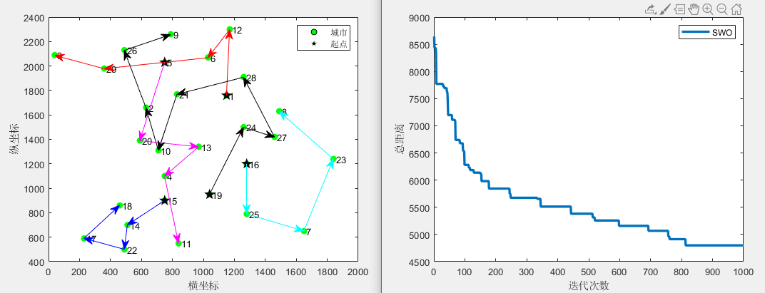 StartPoint=[1 5 15 16];%起点城市的序号(可以修改) 必须由小到大排列 (建议:2到6个旅行商)