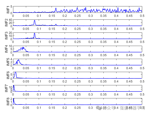 频谱图(这里IMF8即为残差,名字不同而已,其实都一样的):