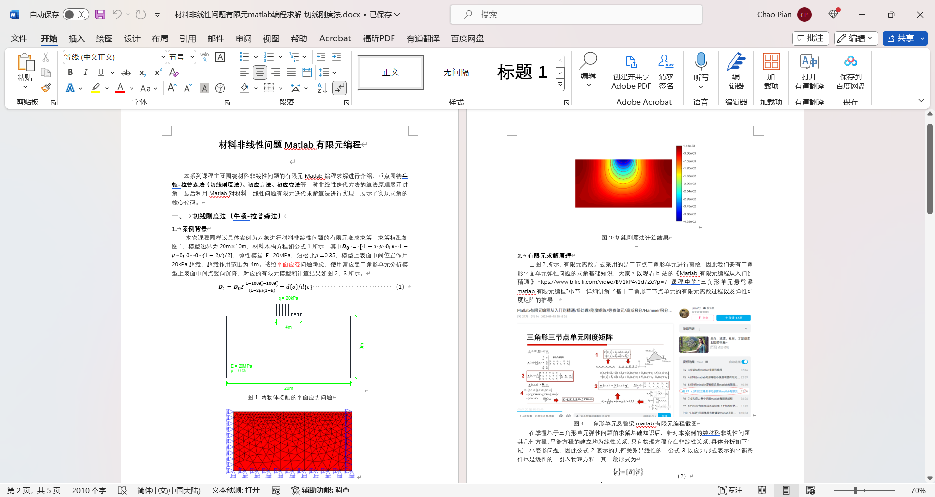 由图2所示,有限元离散方式采用的是三节点三角形单元进行离散,因此我们要有三角形平面单元弹性问题的求解基础知识,大家可以观看b站的《Matlab有限元编程从入门到精通》https://www.bilibili.com/video/BV1kP4y1d7Zo?p=7课程中的“三角形单元悬臂梁matlab有限元编程”小节,详细讲解了基于三角形三节点单元的有限元离散过程以及弹性刚度矩阵的推导。