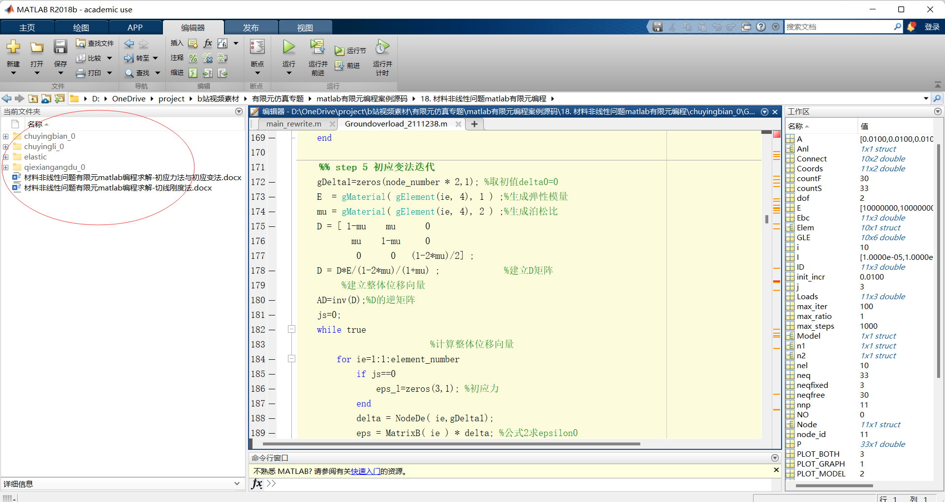 你将获得:三种材料非线性求解算法的有限元Matlab源码+程序理论文本doc文件