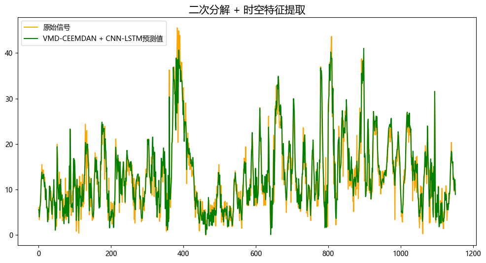 VMD + CEEMDAN二次分解,CNN-LSTM预测模型, 有着更小的MSE, MAE,效果特别明显,提升显著!!