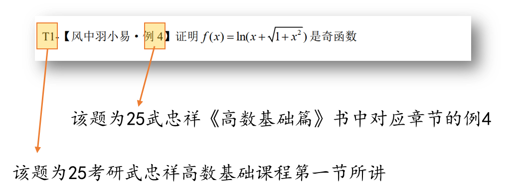重要说明:本做题本依据25版武忠祥老师的高数基础课程与《高等数学基础篇》整理制作而成!每道题标明了该题属于基础课程第几节以及该题属于《高等数学基础篇》的例几,方便查找答案!如下所示: