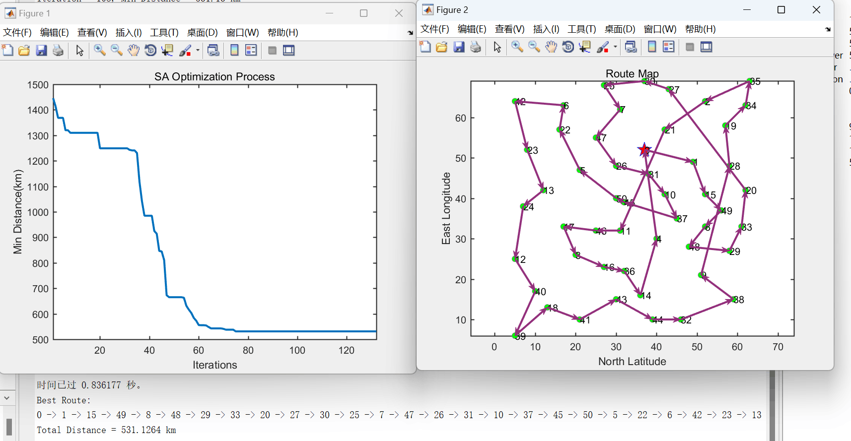 本文介绍了一种基于模拟退火算法的优化解决方案,用于解决旅行商问题(Traveling Salesman Problem,TSP)。TSP是一个NP难问题,指的是一位旅行商要到若干个城市销售商品,他需要求出经过若干个城市返回出发点的最短路径,每个城市必须经过且仅经过一次。旅行商问题在实际应用中非常常见,如物流配送、交通调度、电路板布线等领域都需要优化最短路线。而模拟退火算法是一种元启发式算法,可以应用于求解组合优化问题,是解决TSP问题的有效算法之一。