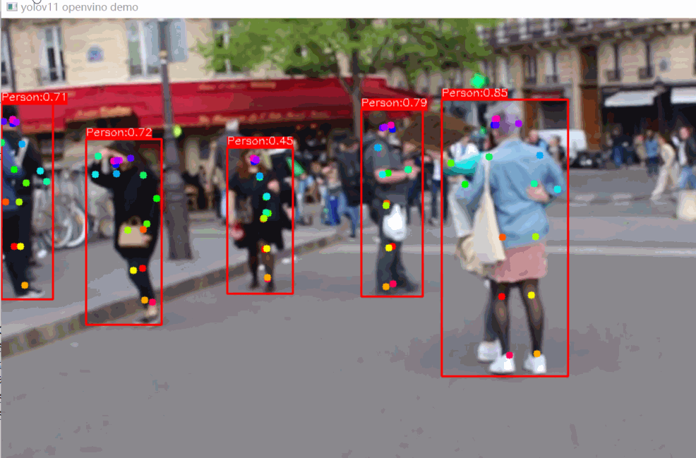 通过OpenVINO的优化,YOLOv11-Pose模型在英特尔硬件上的推理速度得到了大幅提升,能够满足实时处理的需求,从而在姿态估计任务中表现出色。