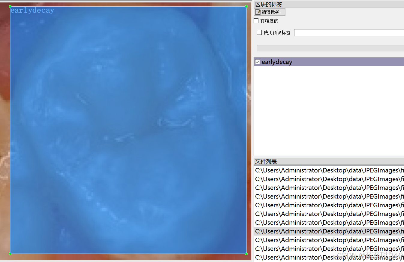 标注类别名称:["decaycavity","earlydecay","healthytooth"]