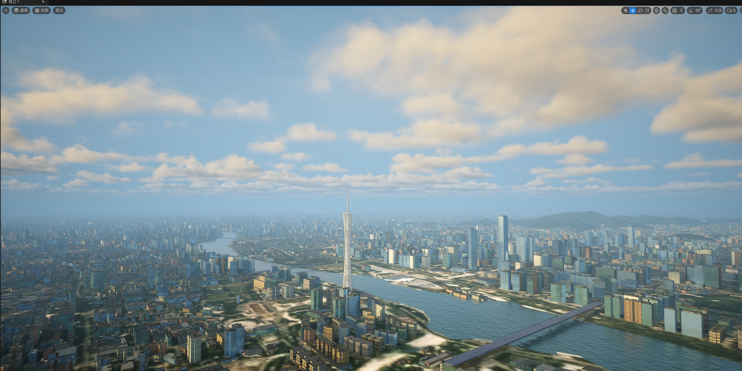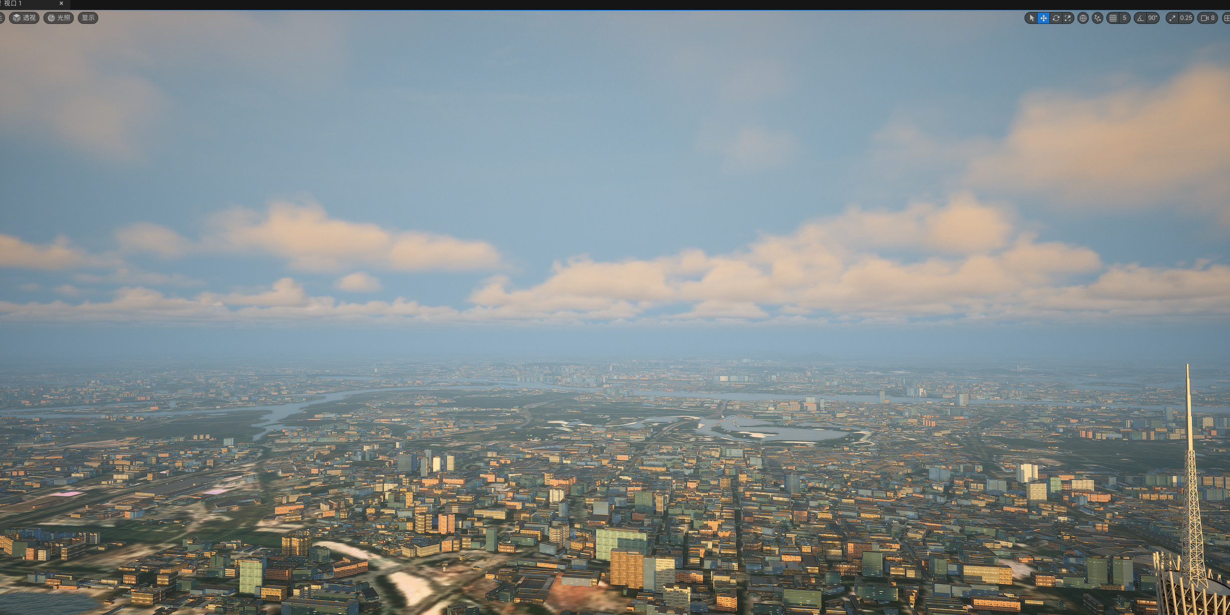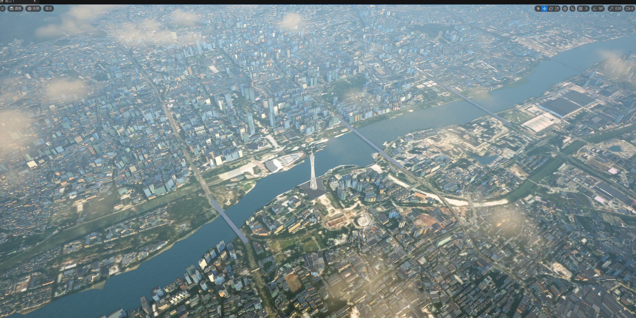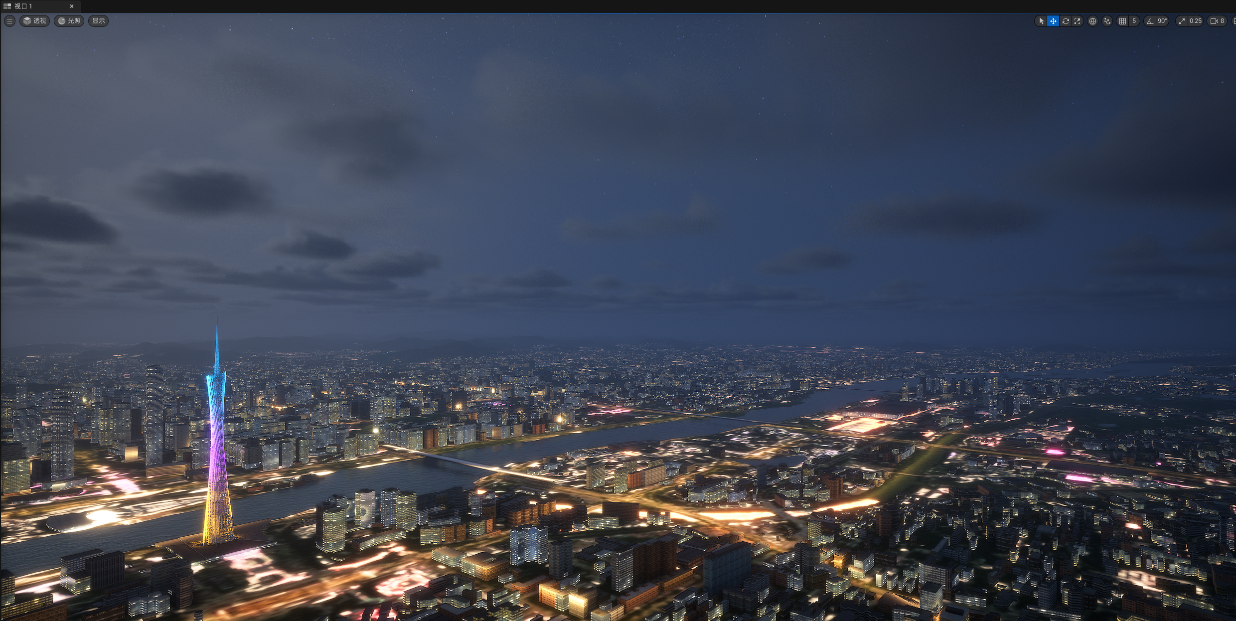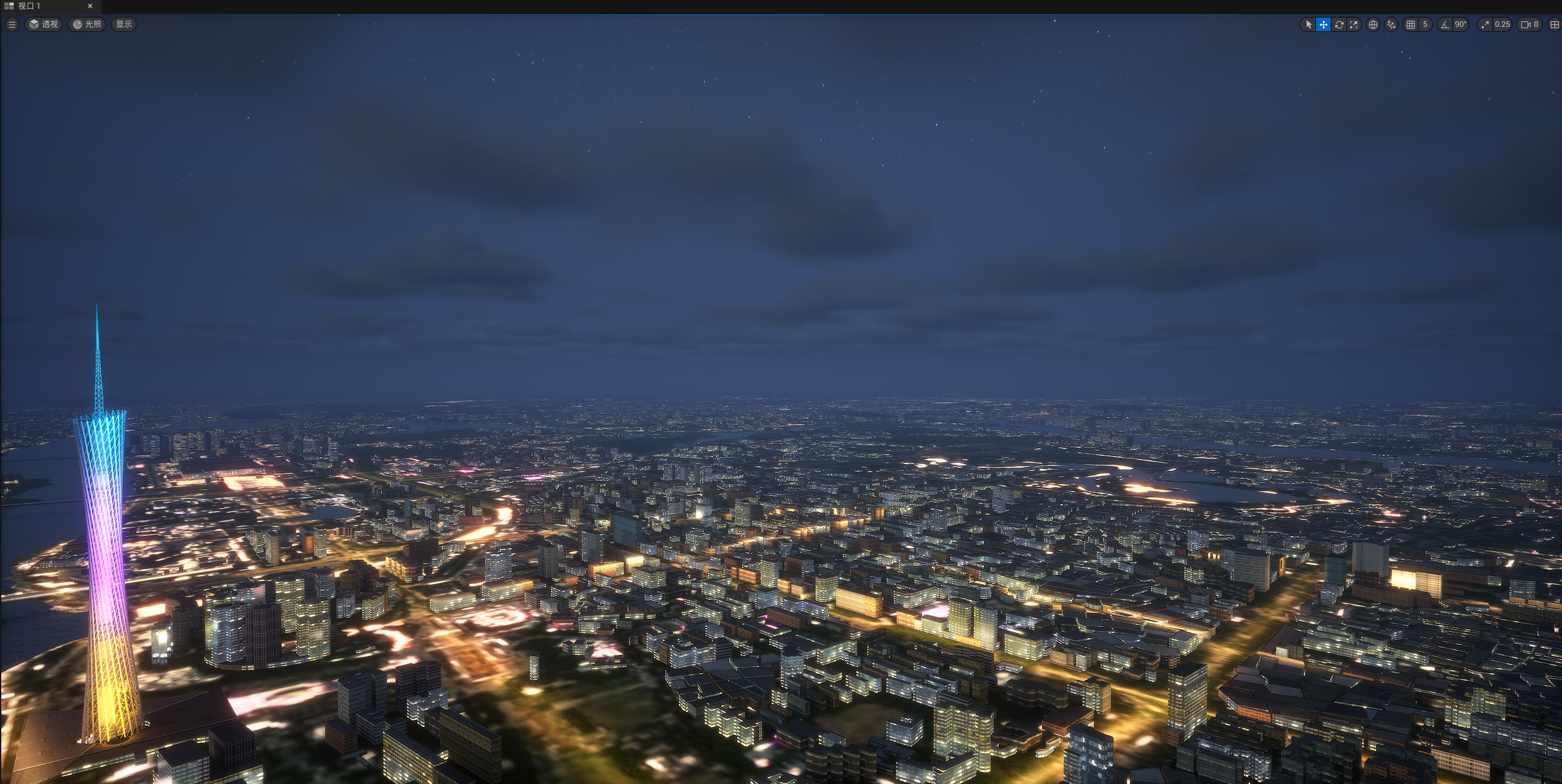 UE524小时全动态灯光实时渲染,运行畅顺,效果如截图和视频所示,所见即所得,三个关卡,白天,夜景,主关卡,主关卡运行后拖动时间滑条可以实现24小时时间变化