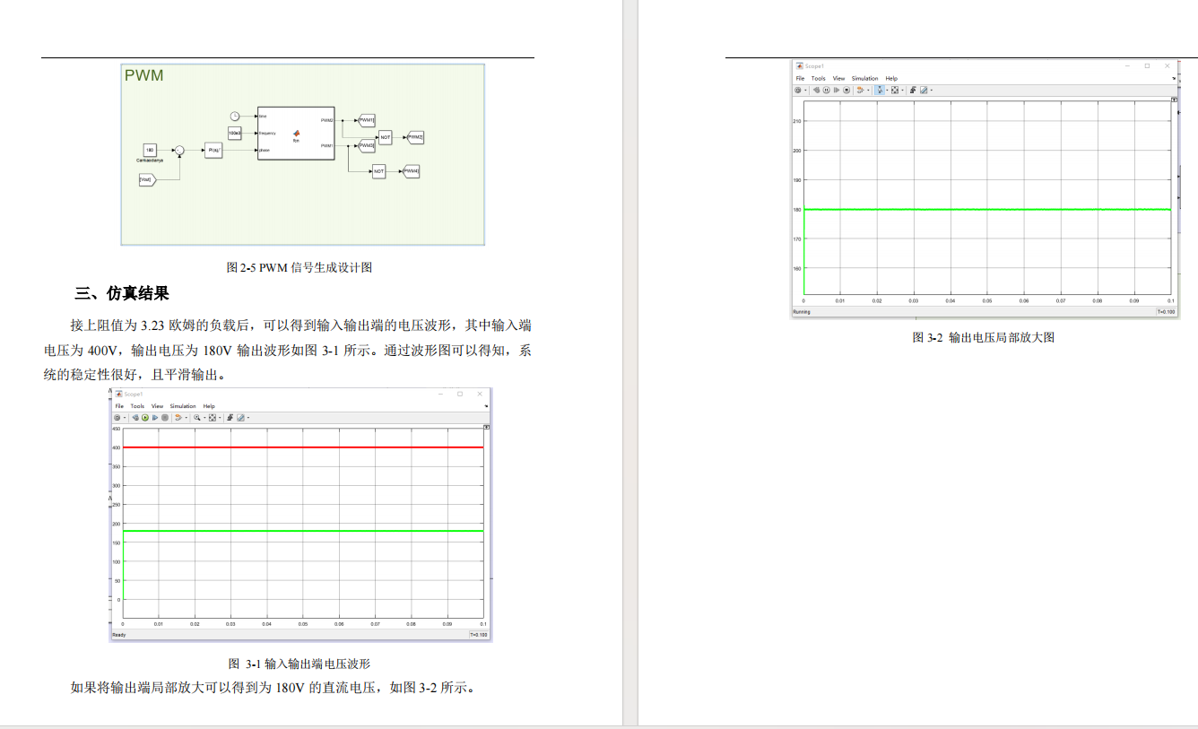 1)、输出电压与给定电压进行比较,增设 PI 调节,将比较信号通过 PWM 控制模块