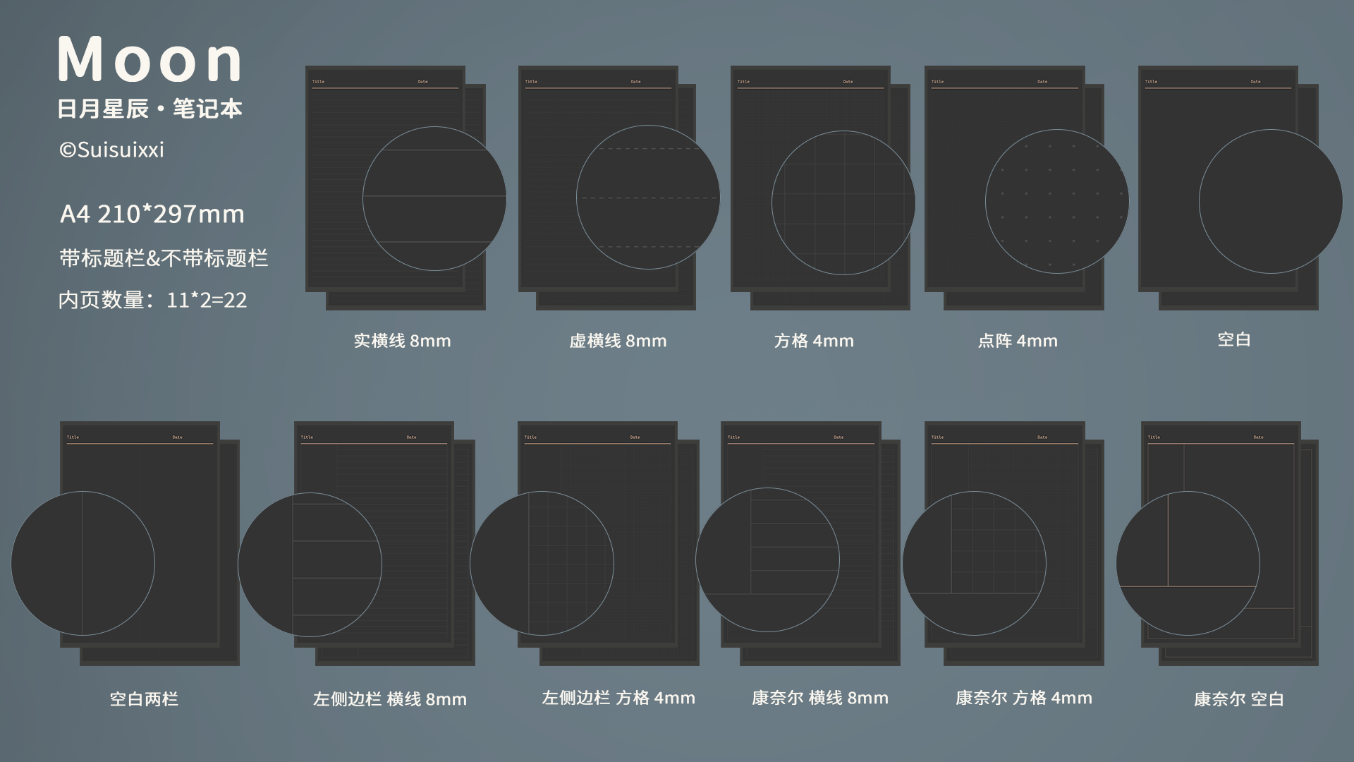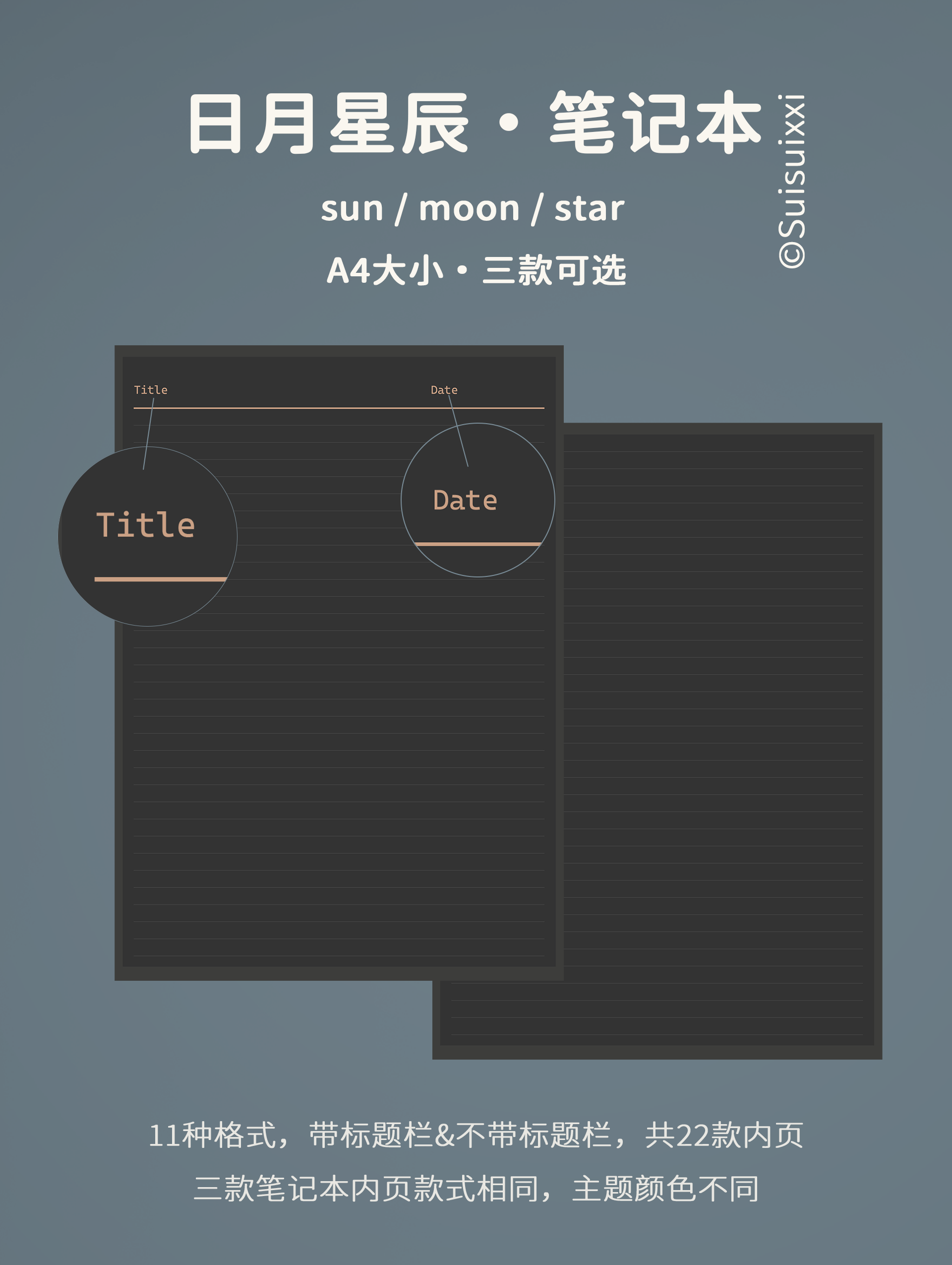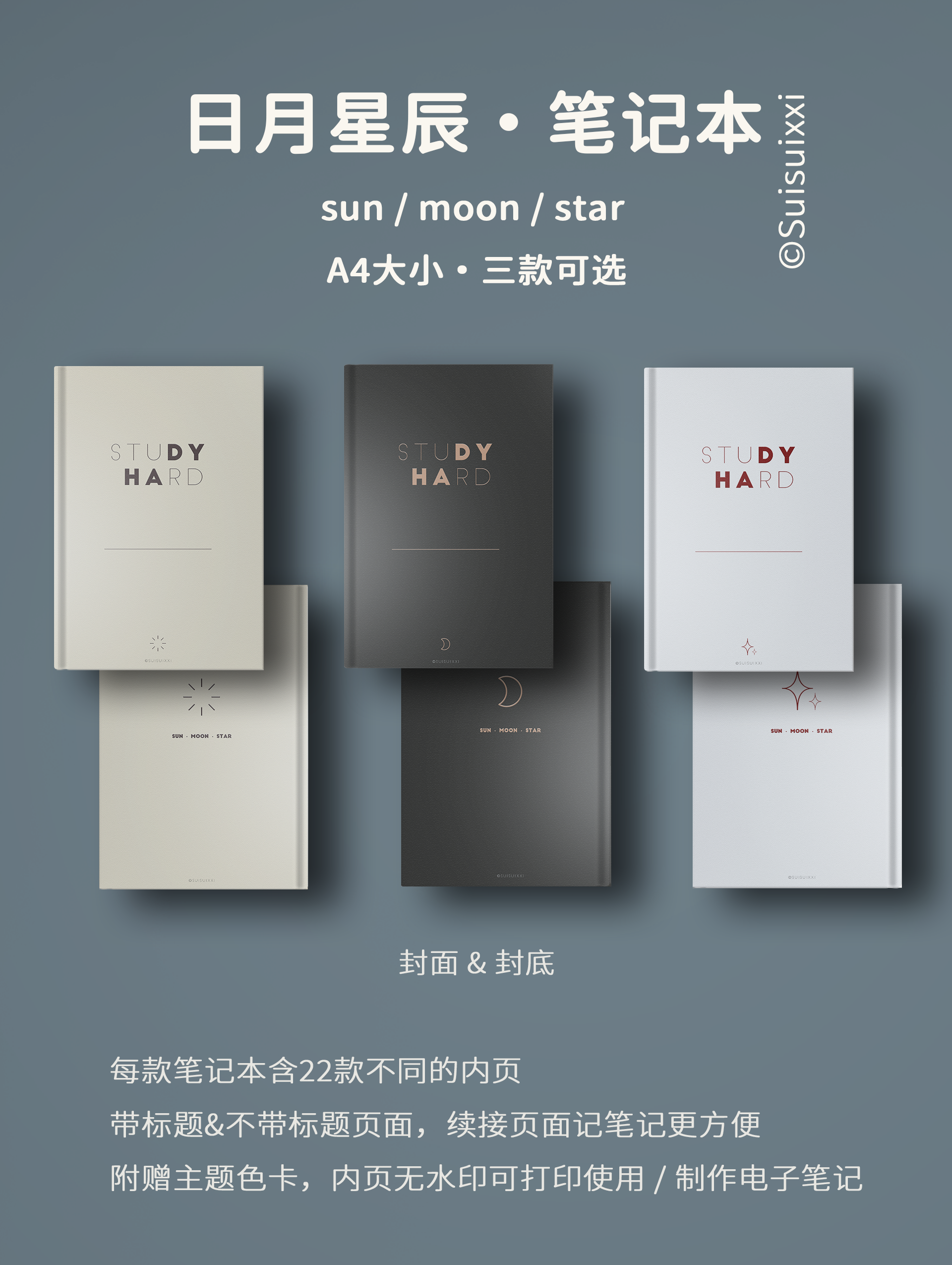 日月星辰系列笔记本,共有三款【米色Sun】、【黑色Moon】、【白色Star】