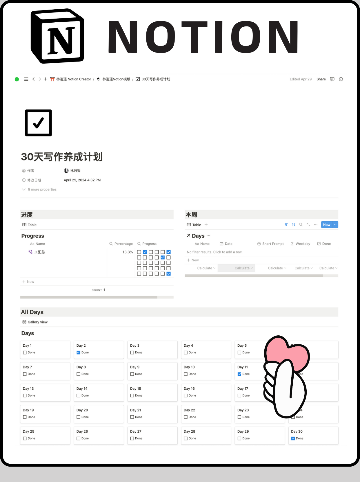 - 日历视图:一目了然的30天规划,每天一个小格子,记录你的写作进度,见证从空白到丰富的每一天。