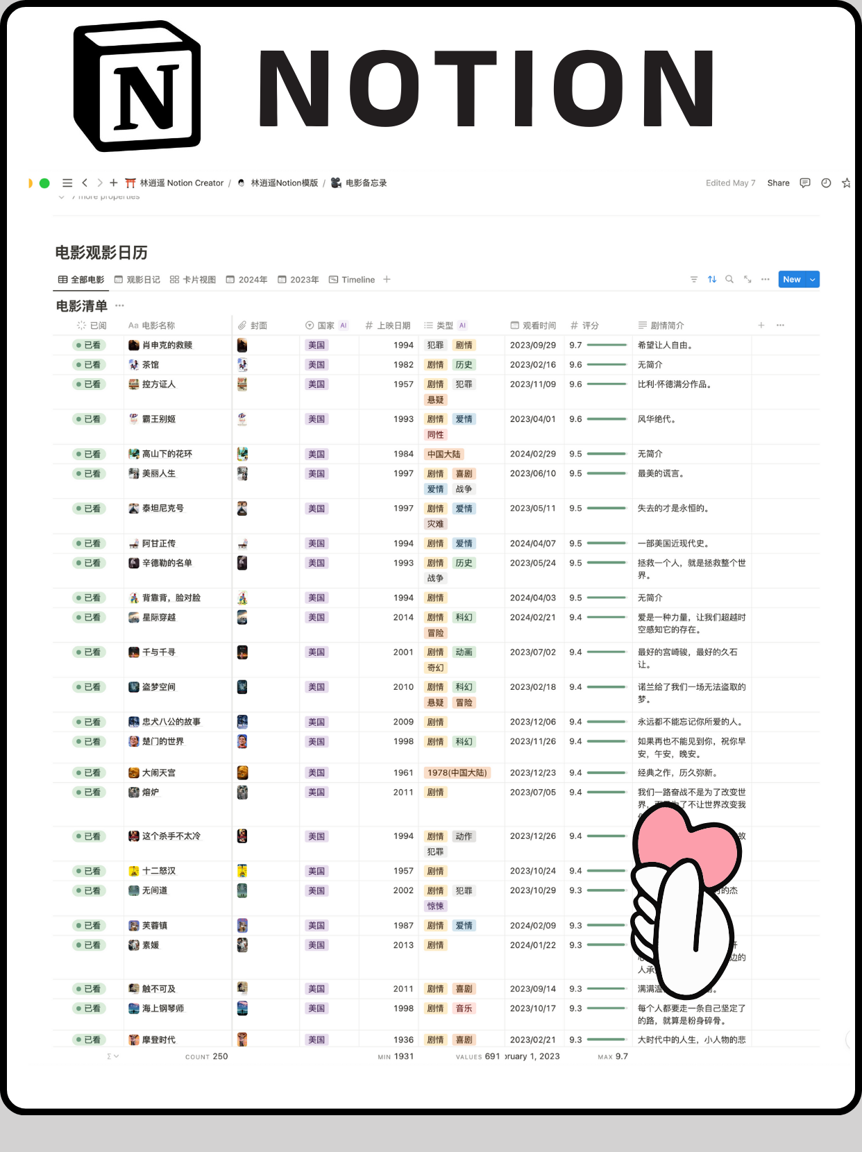 【电影观影记录模版 —— 影像轨迹,尽在掌握】