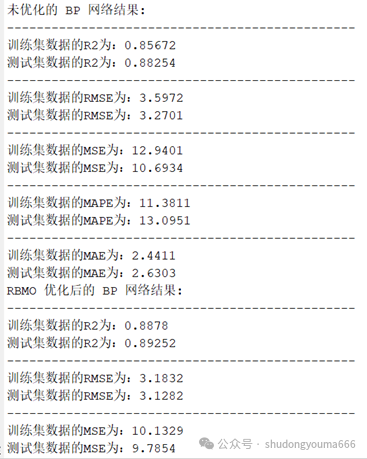点击main_BPvsBP_RBMO运行结果,并且输出评价指标R2,RMSE,MSE,MAPE和MAE: