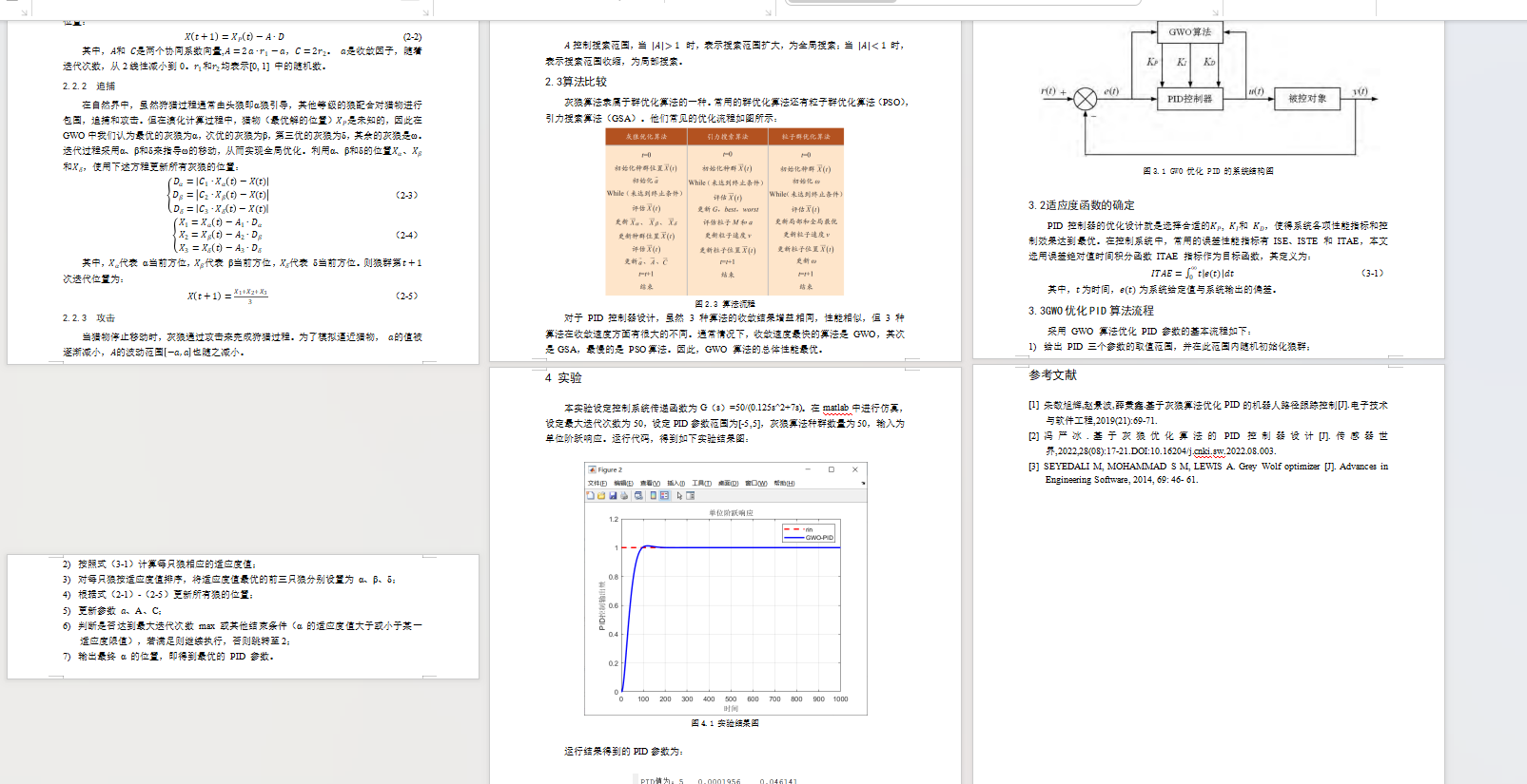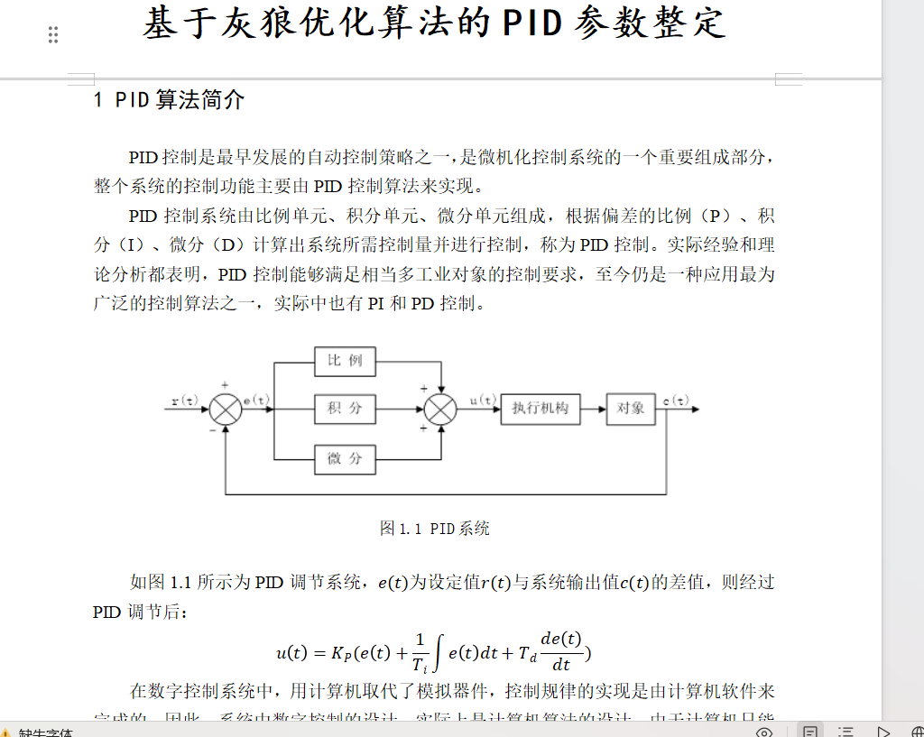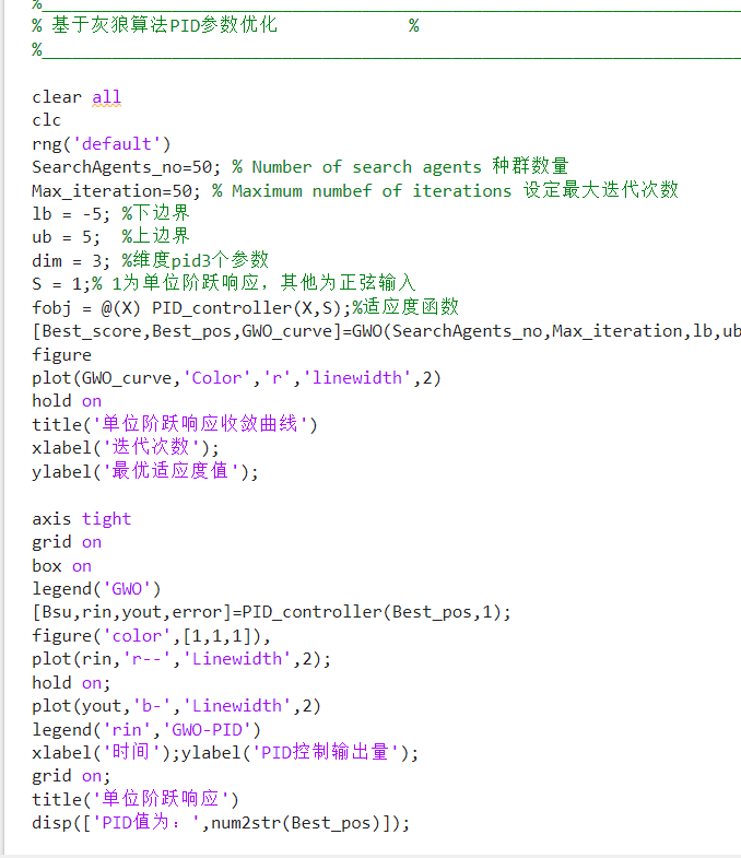 作者整理了灰狼优化算法优化PID参数matlab代码,结果表明,该智能优化算法表现优异,存在良好的寻优特性,适合新手学习,或者发表文章进行使用。附带有汇报使用的ppt和