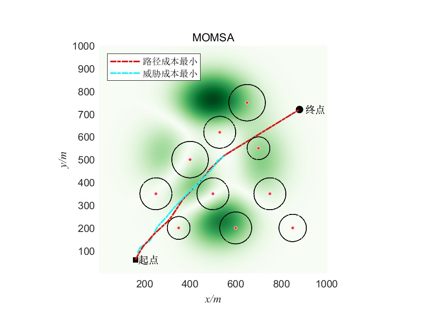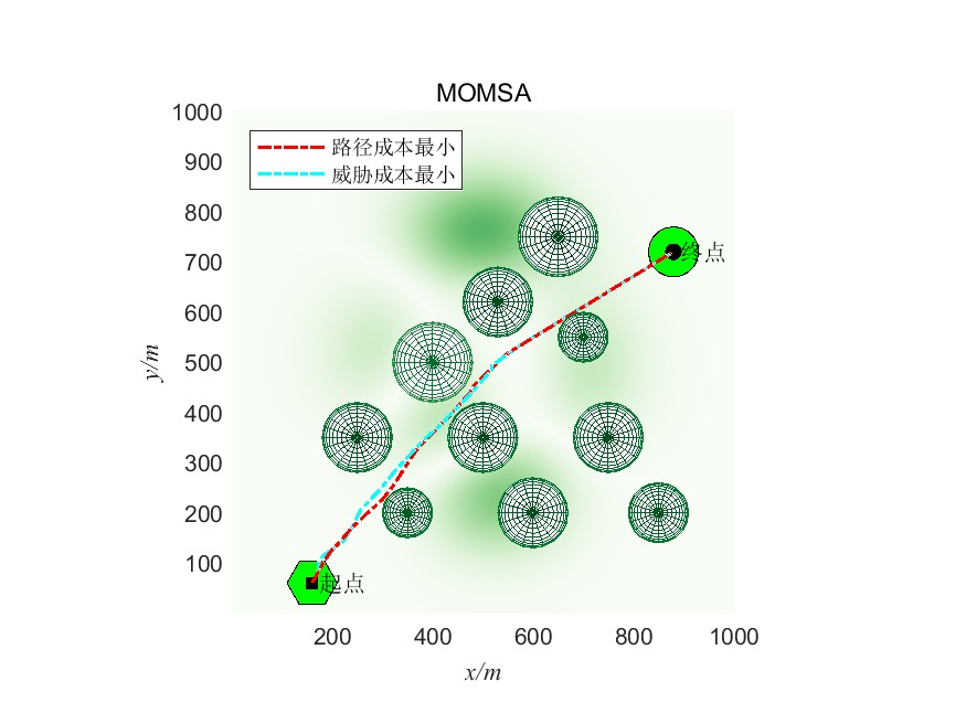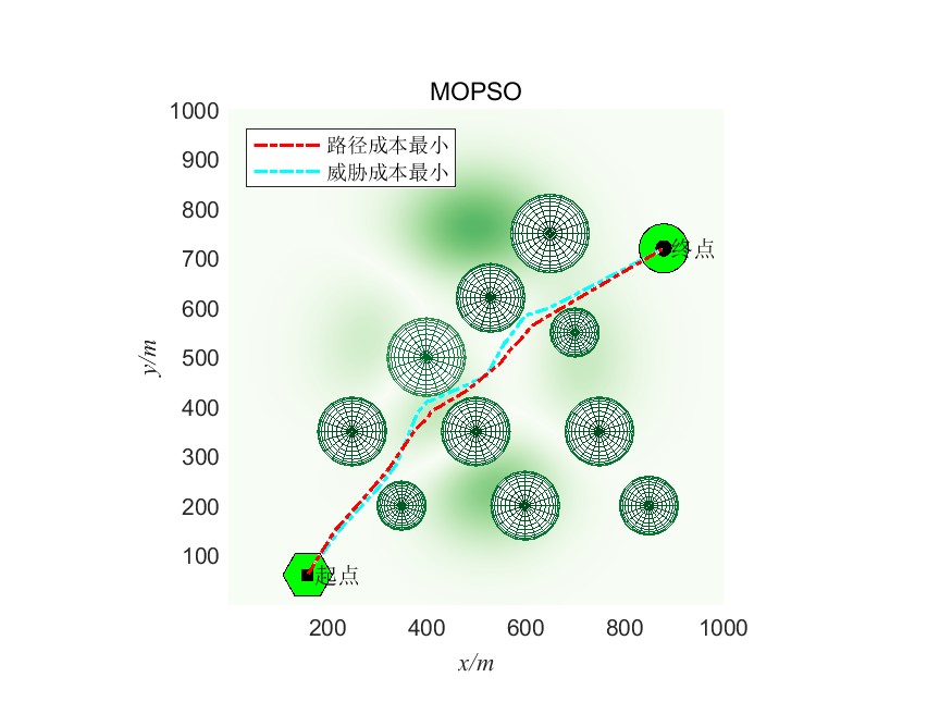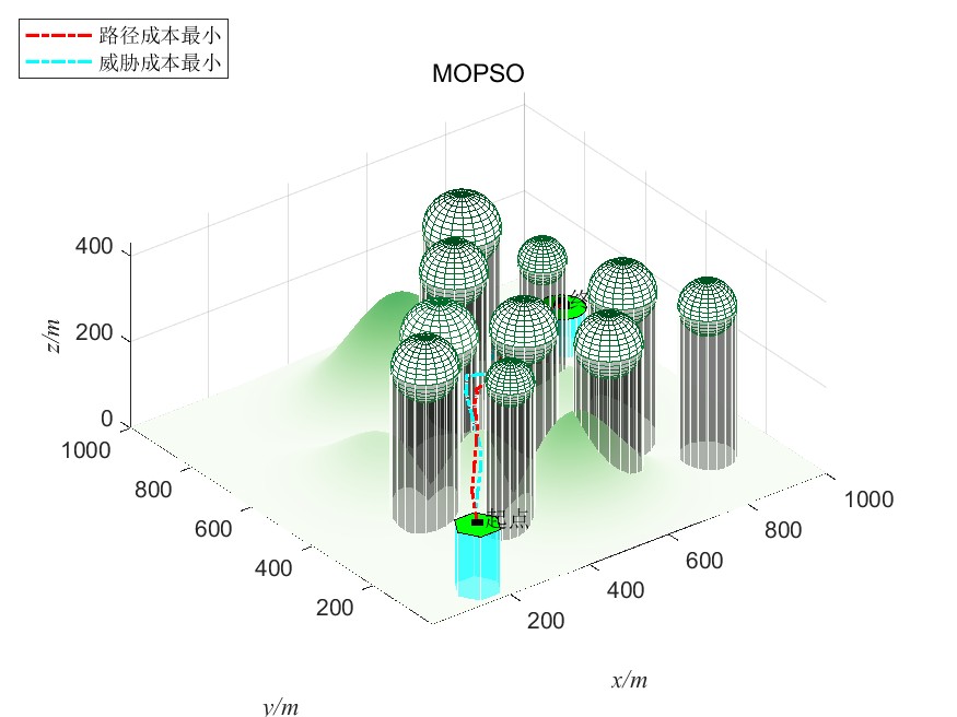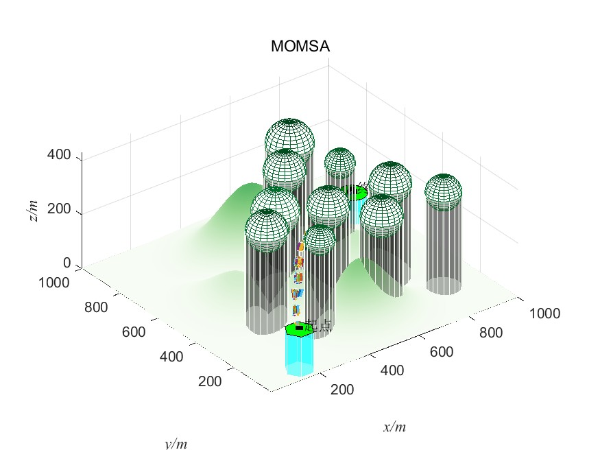 多目标粒子群优化算法MOPSO与多目标螳螂搜索算法MOMSA求解无人机三维路径规划(MATLAB代码)