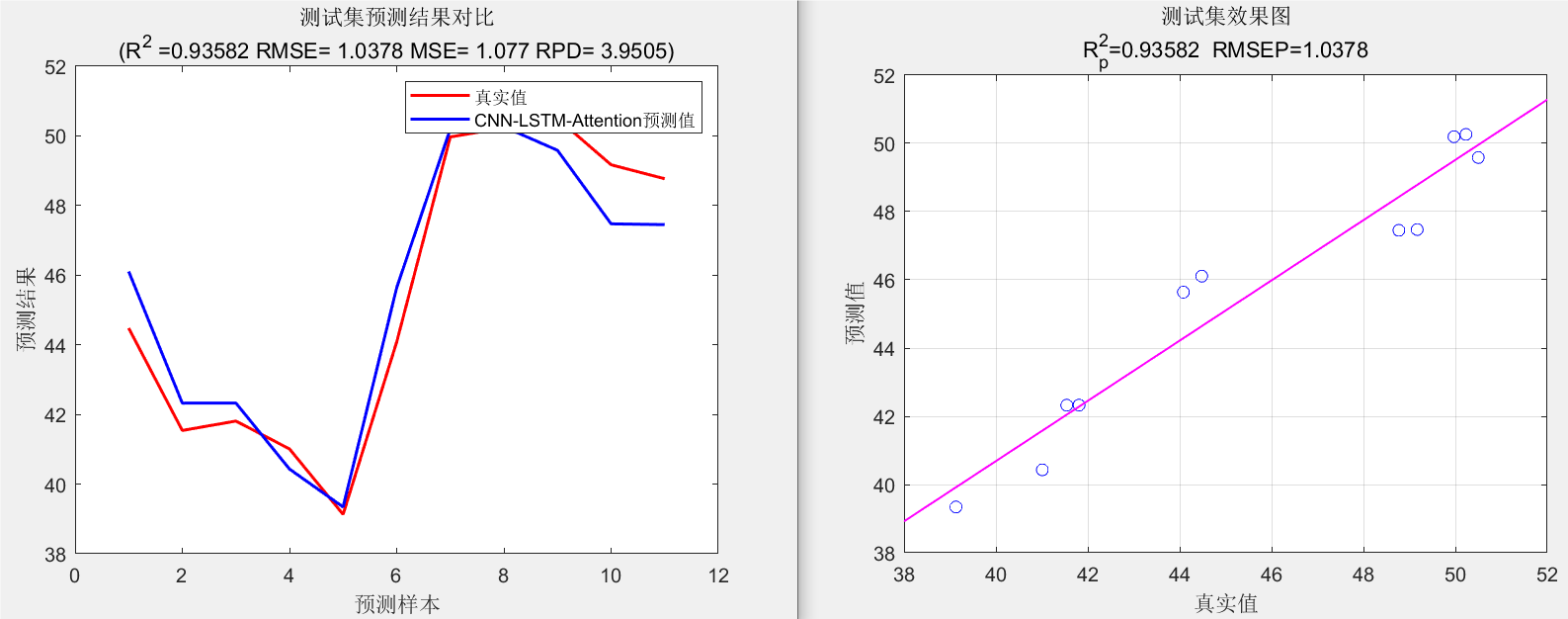 -----------------------误差计算-------------------------- 评价结果如下所示: 平均绝对误差MAE为:0.86055 均方误差MSE为: 1.077 均方根误差RMSE为: 1.0378 决定系数R^2为: 0.93582 剩余预测残差RPD为: 3.9505