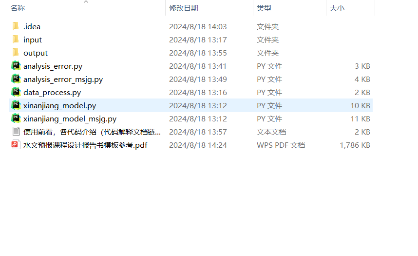 包括新安江模型日模型、次洪模型、评价指标计算、过程线图绘制以及数据筛选等Python源代码,并附上课程设计报告书模板参考,适合新安江模型初学者或者课程设计。