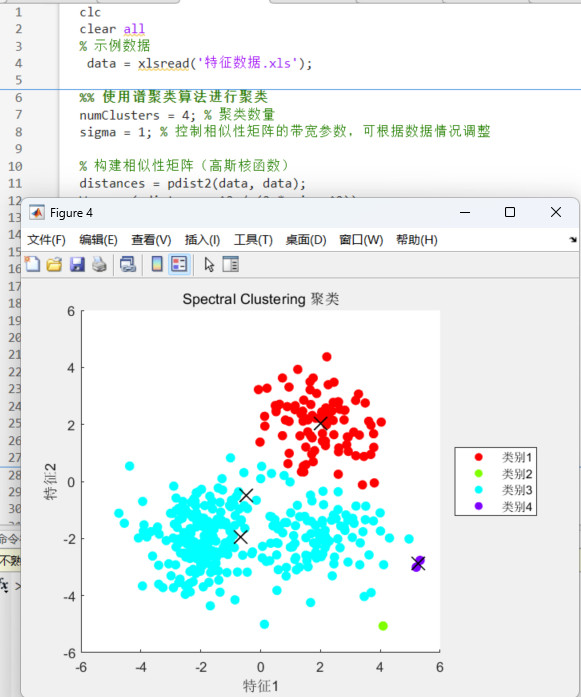 Spectral谱聚类算法,聚类结果可视化,Matlab源代码。