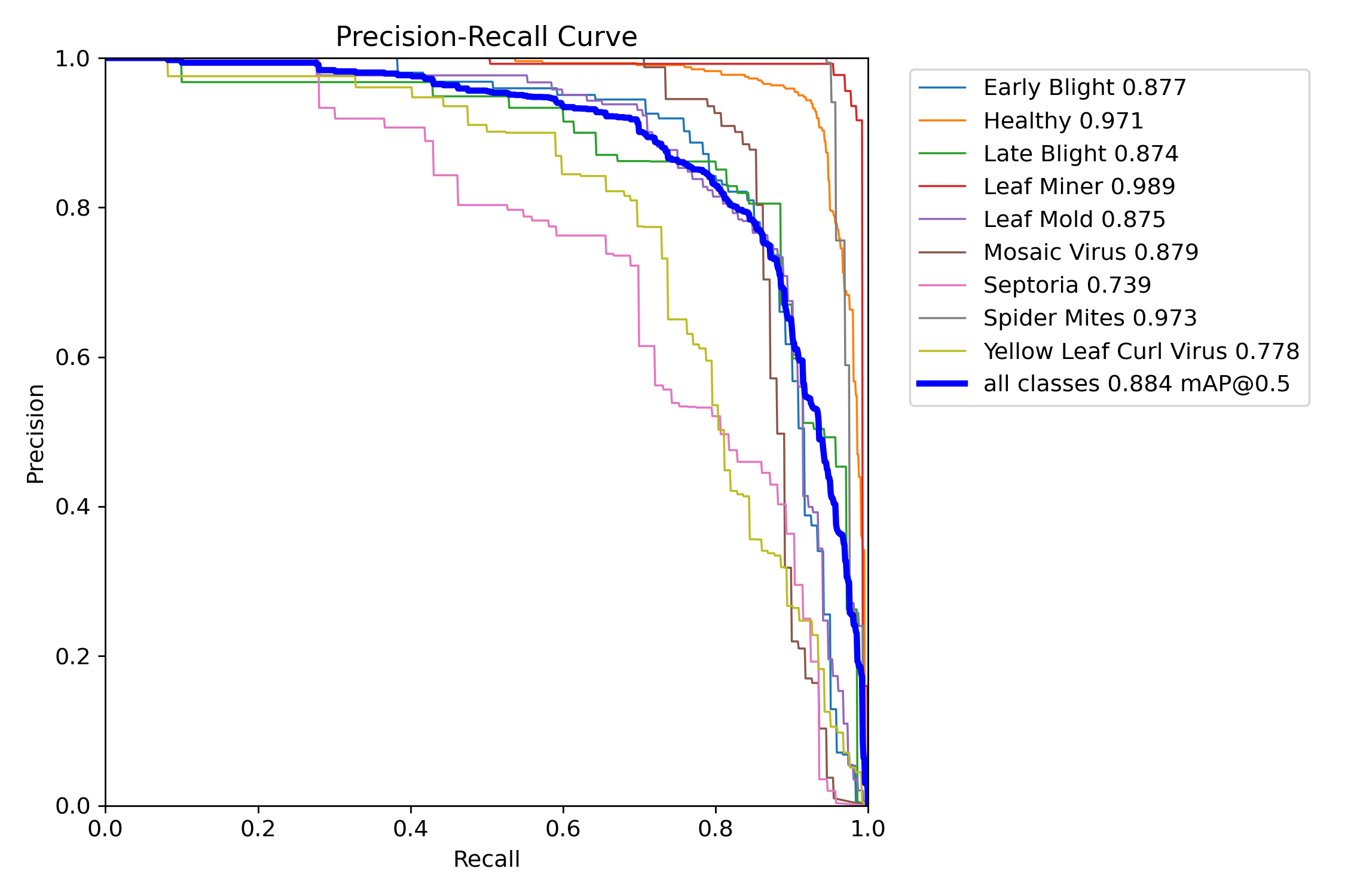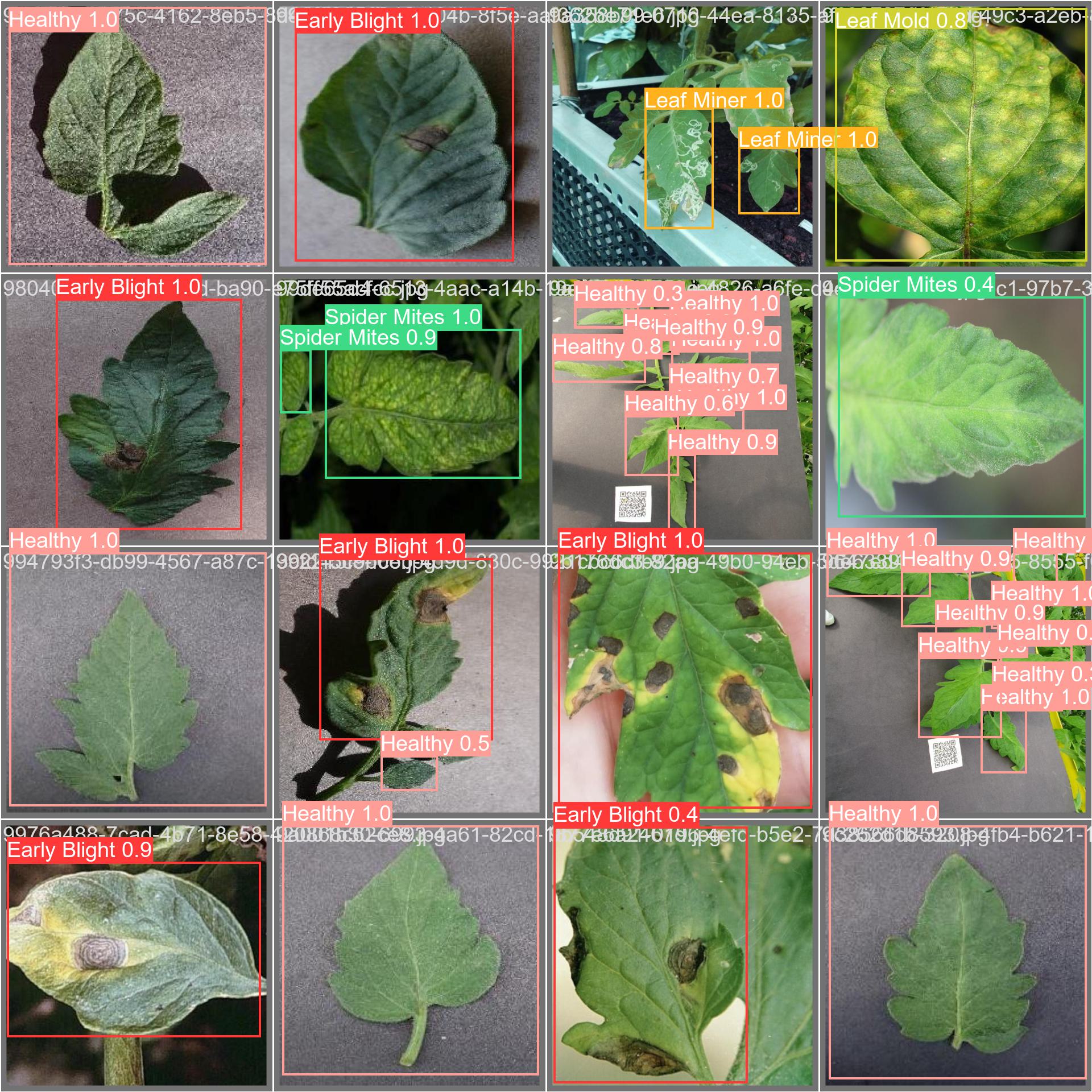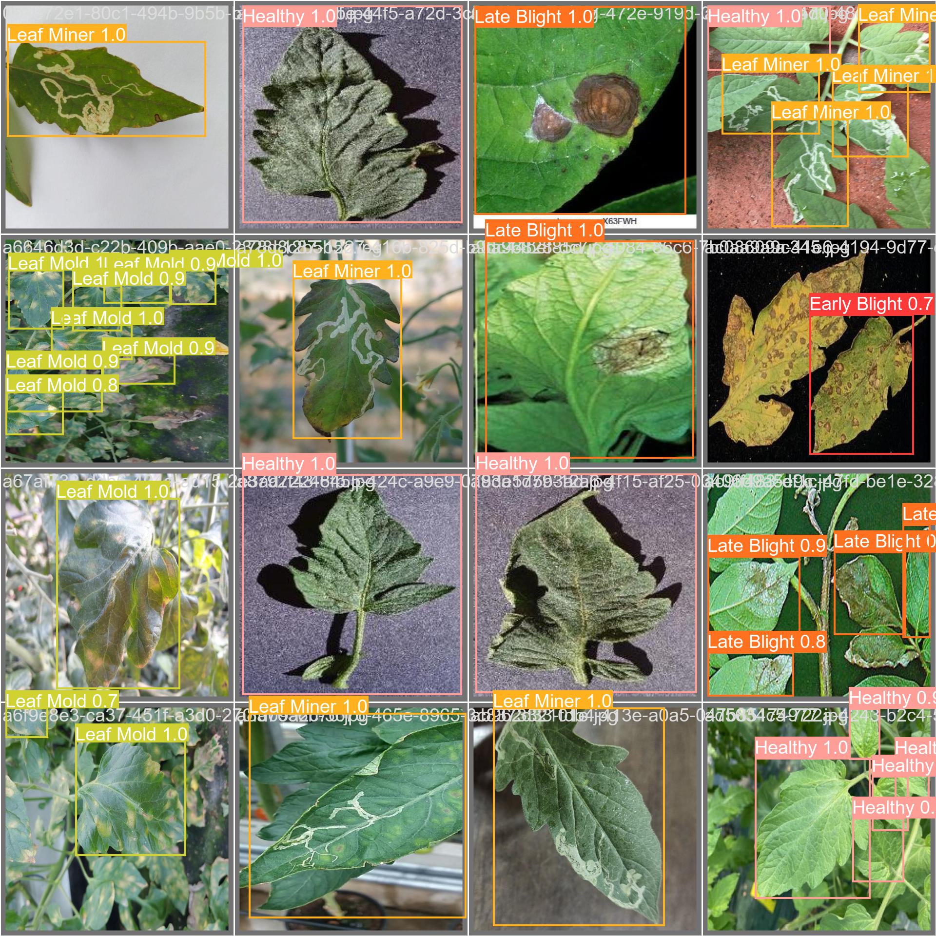 番茄叶片病虫害数据集。数据集是已经标注好的,txt格式,适应用于训练YOLO等目标检测模型,已经划分好训练集(2517张)验证集(663张)测试集(182张),数据集标注准确,亲测可用,yolov10n实测map50为88.4%。均为原图,不含数据增强的图片。分为9类:#早疫病、健康、晚疫病、潜叶蛾病、叶霉病、花叶病、斑枯病、红叶螨、黄花曲叶病。包含类别标签文件,拿到数据集后无需任何处理,即可直接用于模型训练