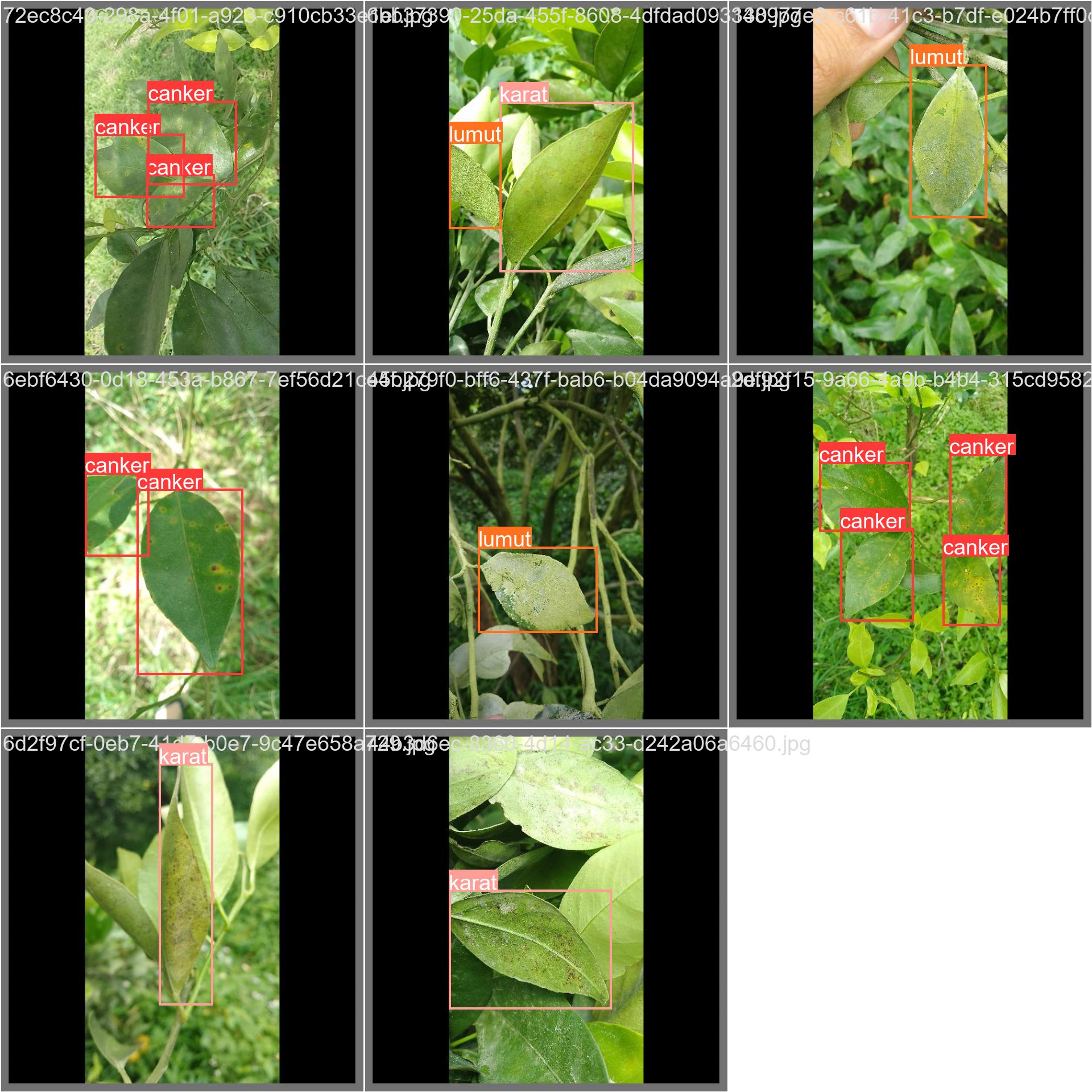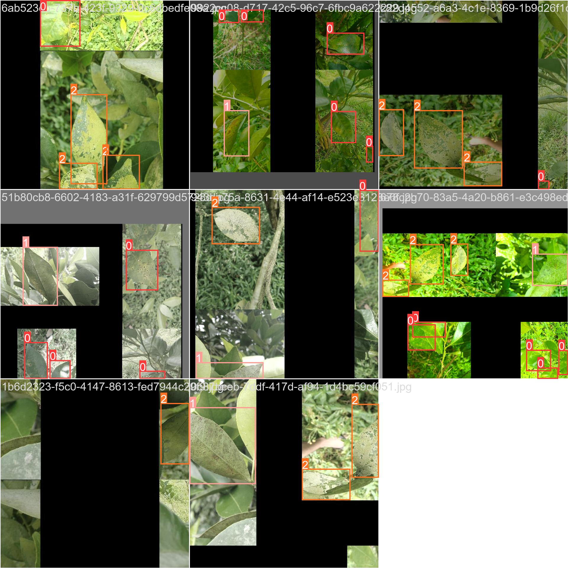 柑橘叶片病虫害数据集。数据集是已经标注好的,为YOLO标注格式(TXT格式)适用于训练yolo5 yolo8等yolo系列的目标检测模型,数据集包含txt标注文件和图片文件,已经划分好训练集、验证集与测试集,其中训练集708张图片、验证集33张图片、测试集26张图片。数据集附带有类别描述文件data.yaml ,数据集柑橘病虫害分为三类:柑橘炭疽病、柑橘叶片砂皮病、脂点黄斑病。数据集都是标注好的,都是标注好的,有类别描述文件,拿到之后可直接用于模型训练。数据集亲测可用,yolov8n实测最好的map50为:96.0%。