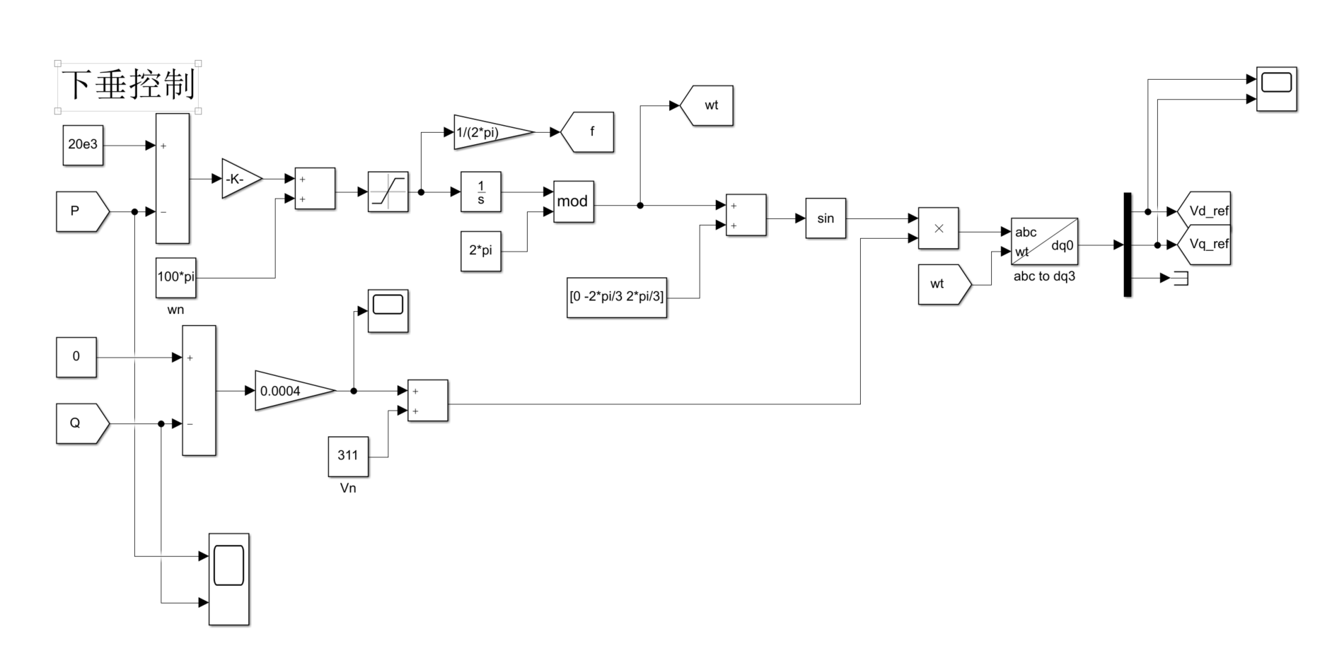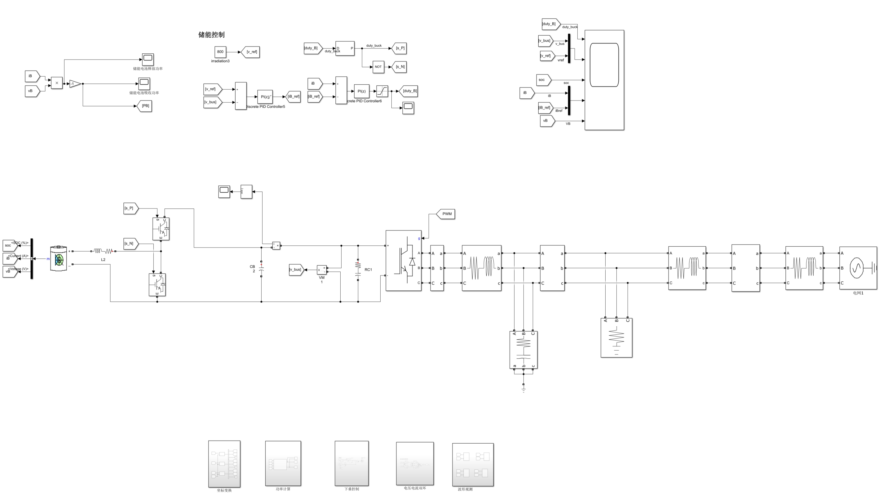 储能下垂控制并网仿真模型,直流侧采用储能电池模型,buck电路升压,交流侧采用下垂控制并入电网,交流侧的控制电路包括有功-频率、无功-电压下垂控制环,电压电流双环,采用SPWM调制,仿真版本为2019b,能够稳定运行,且波形完美!