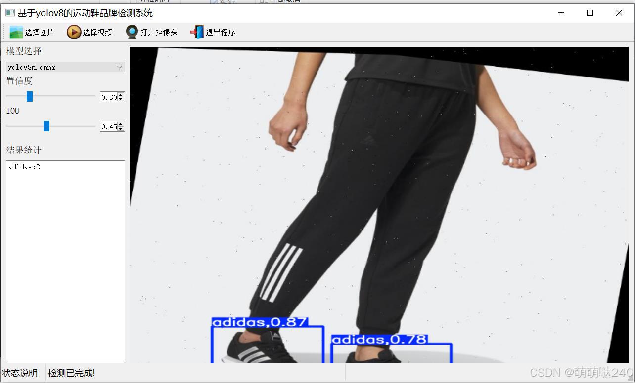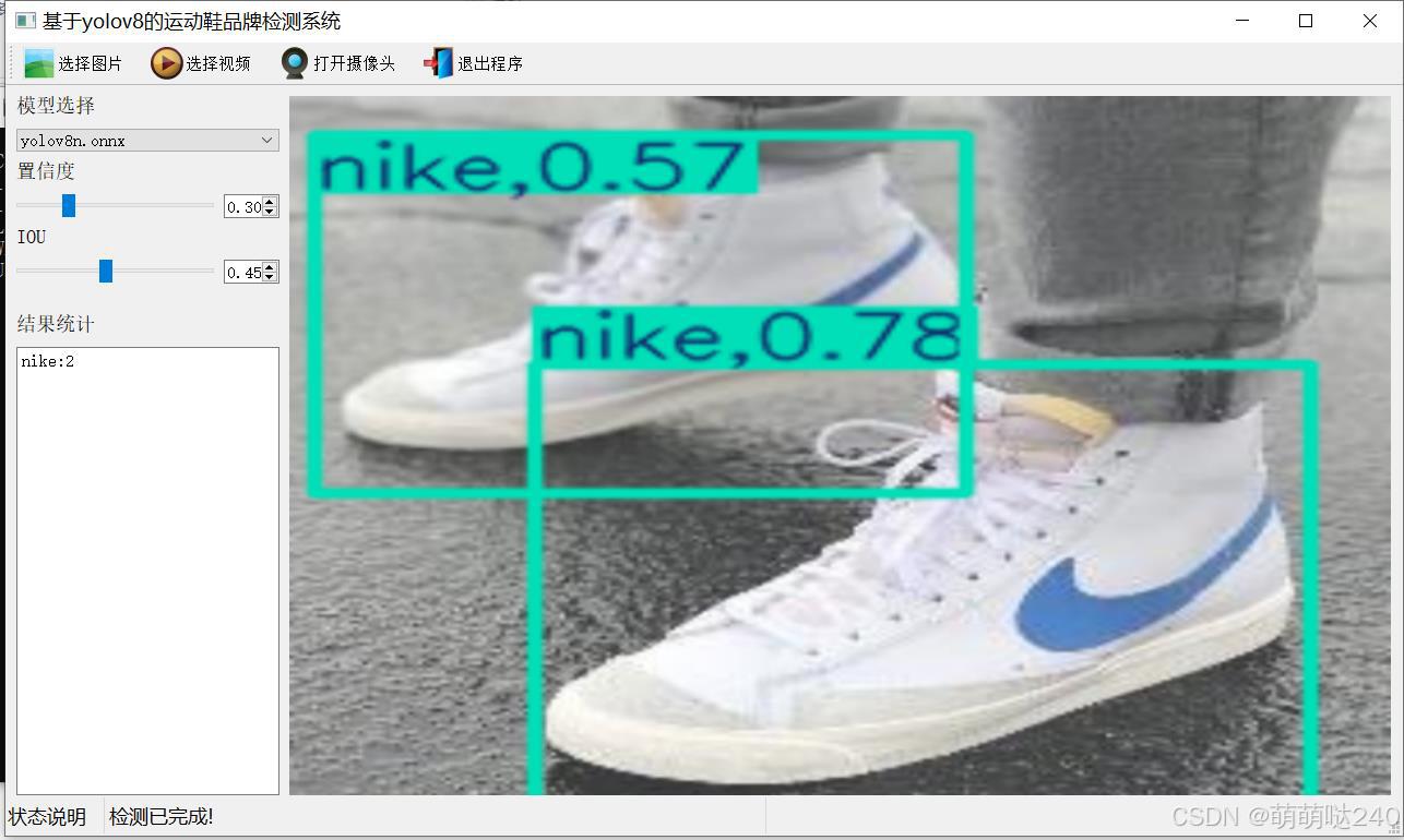 实验结果表明,YOLOv8模型在该任务上表现出较高的精度和实时性,能够在复杂的图片背景和多变的拍摄条件下准确地识别不同品牌的运动鞋。