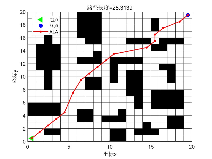 作品简介 栅格地图路径规划:基于人工旅鼠算法(Artificial Lemming Algorithm, ALA)的移动机器人路径规划(提供MATLAB代码)-CSDN博客 创作时间:2025-02-26 20:58:54