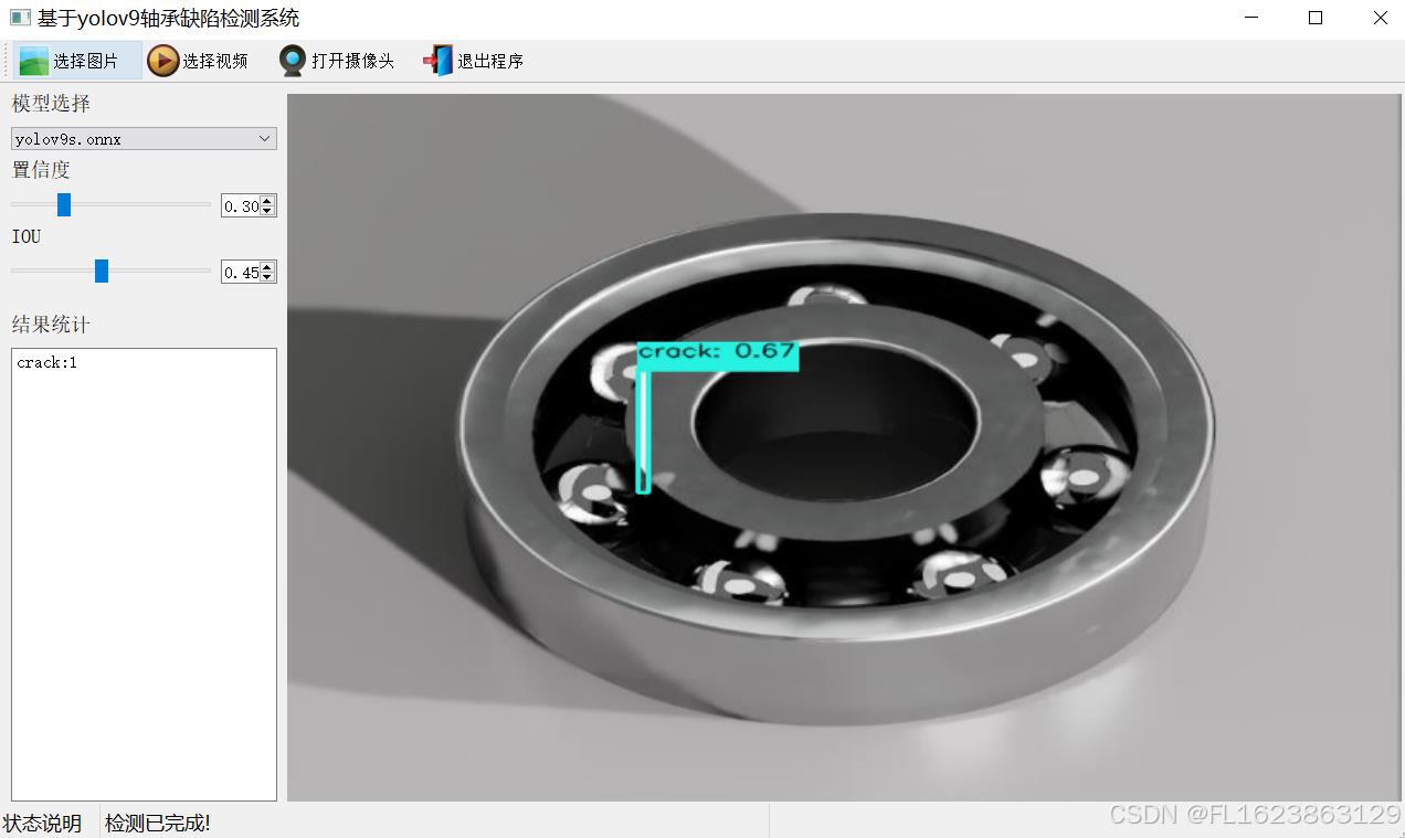 该系统不仅支持对单个轴承图像的检测,还具备摄像头实时检测,视频检测等多种功能。用户可以通过简单的界面操作,轻松上传图像或视频,系统即可自动进行缺陷检测,并实时展示检测结果。