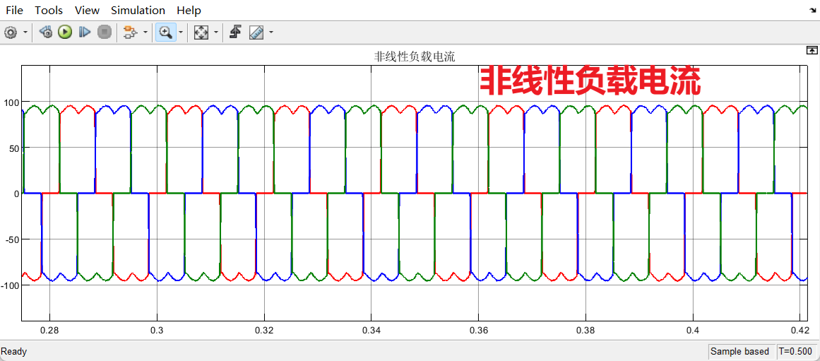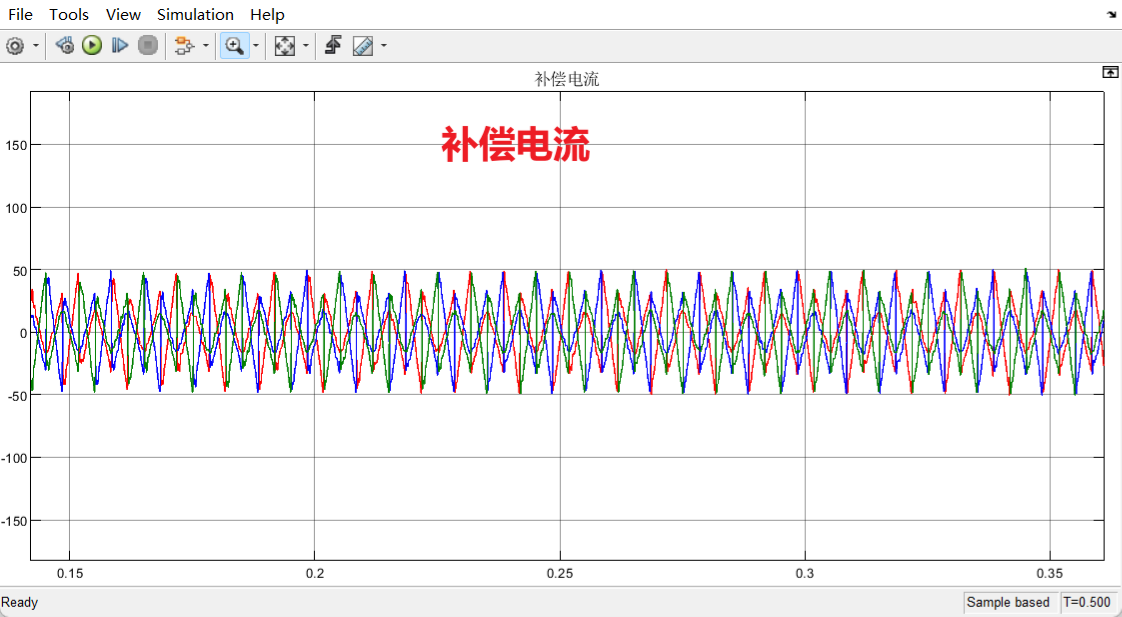 2、APF电流调节采用PI控制+重复控制,调制策略采用svpwm控制,APF消除谐波时,可补偿一定的无功和谐波、补偿后的三相电流THD为2.5%<5%