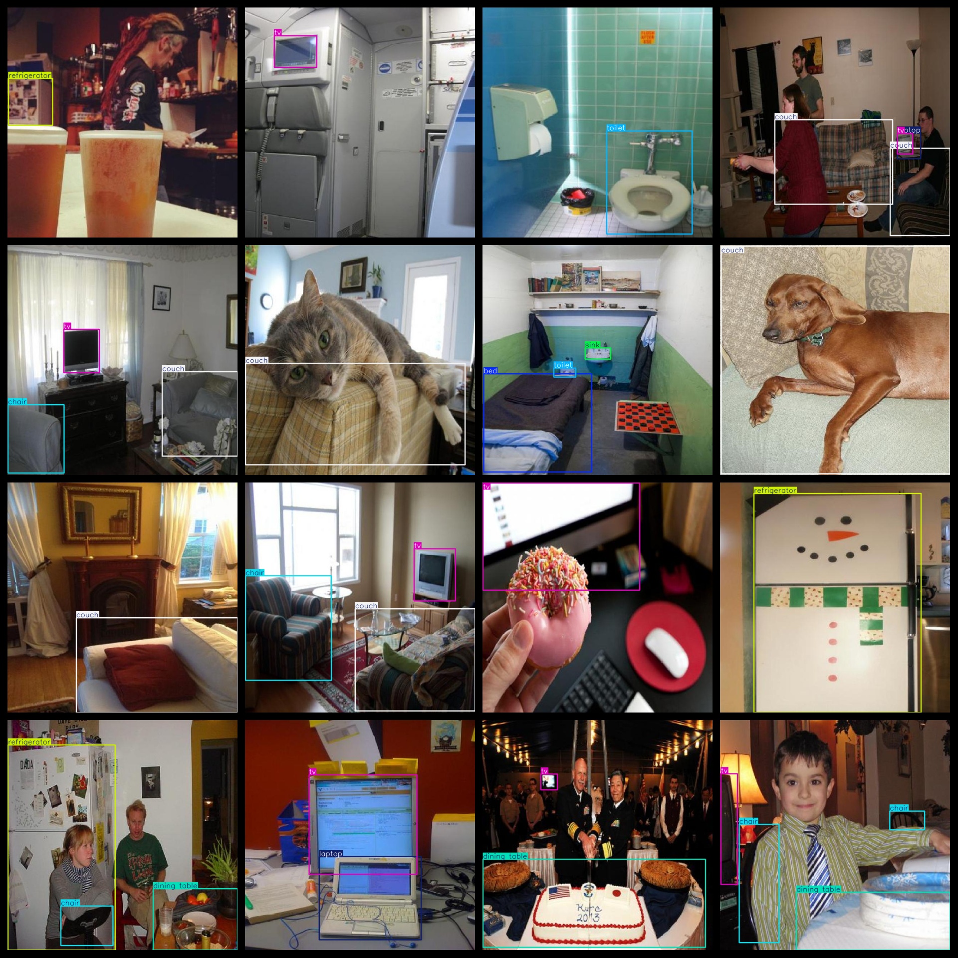 标签名称:["bed","chair","couch","dining table","laptop","microwave","oven","refrigerator","sink","toaster","toilet","tv"]