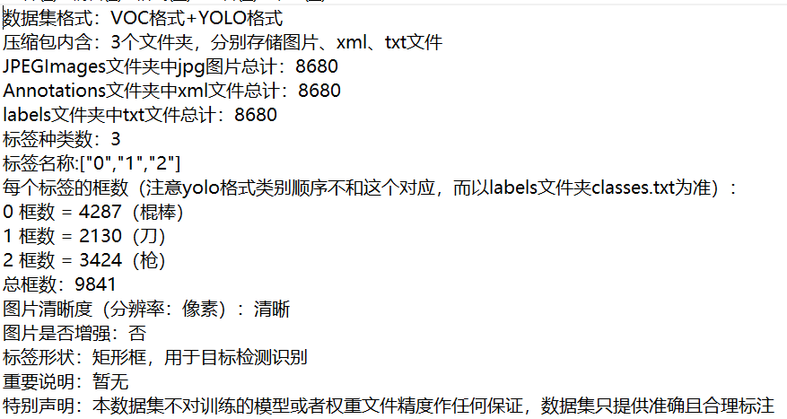 【目标检测】武器数据集8680张3类YOLO+VOC格式