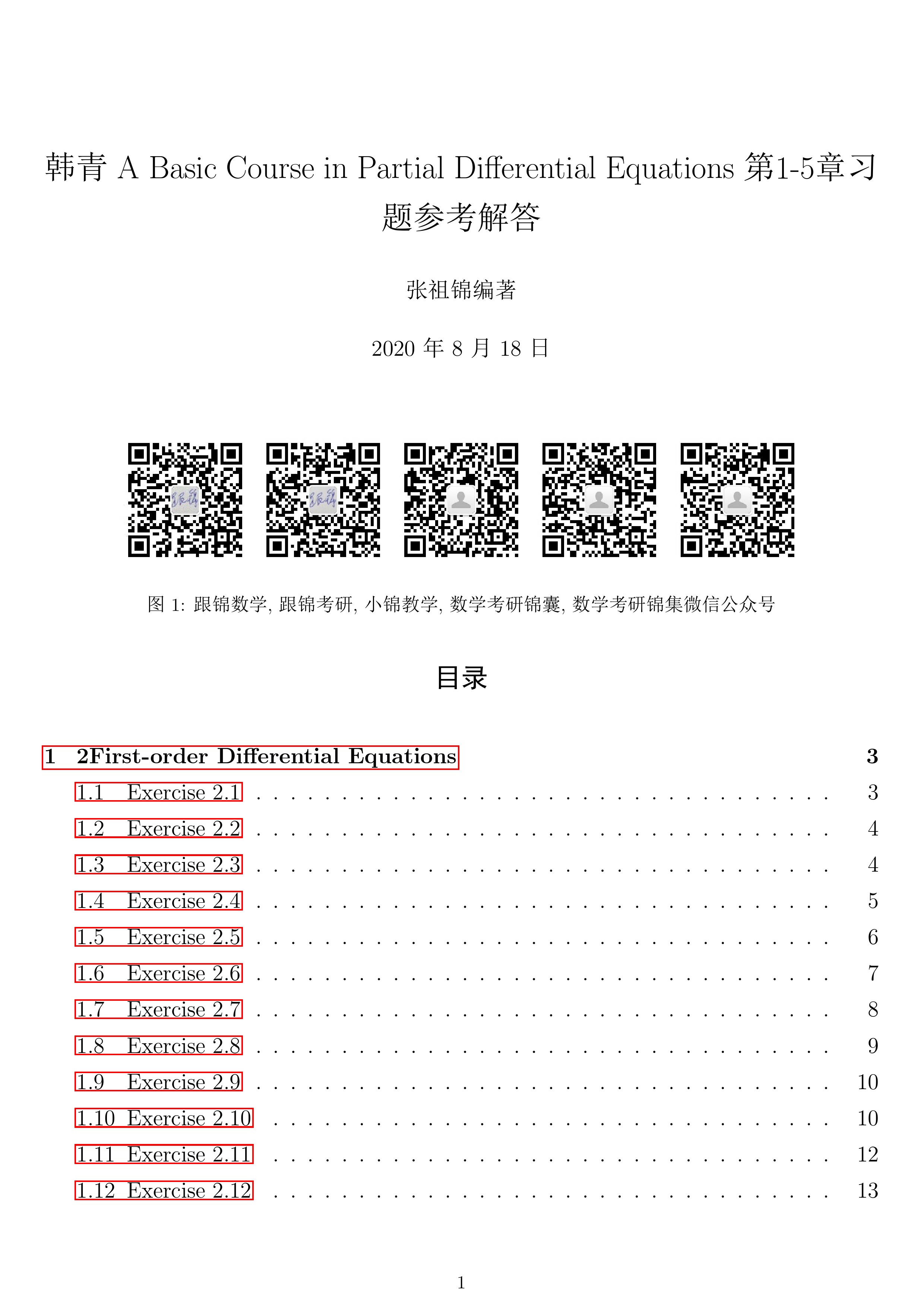 韩青 A Basic Course in Partial Differential Equations 第1-5章习