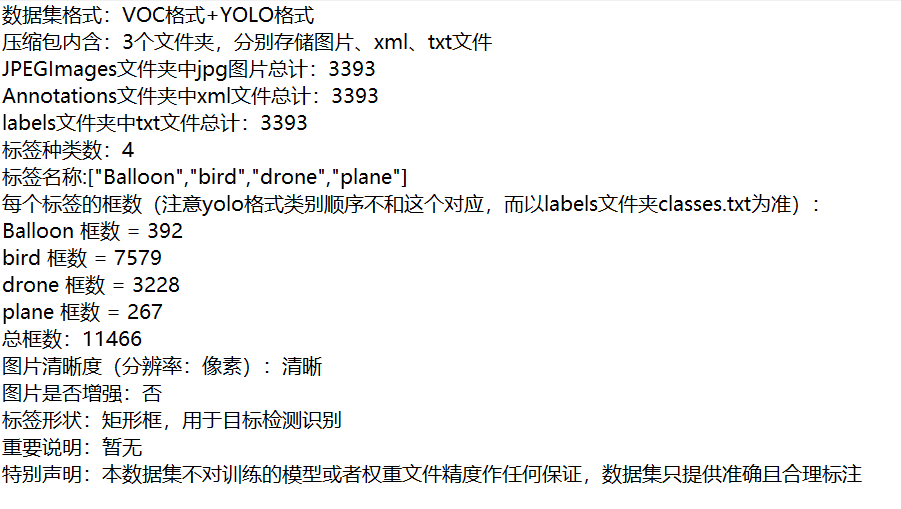 【小目标检测】天空飞行物小目标检测数据集3393张(鸟无人机飞机气球)YOLO+VOC