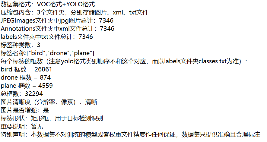 【目标检测】飞行物检测数据集7346张3类标签YOLO+VOC格式