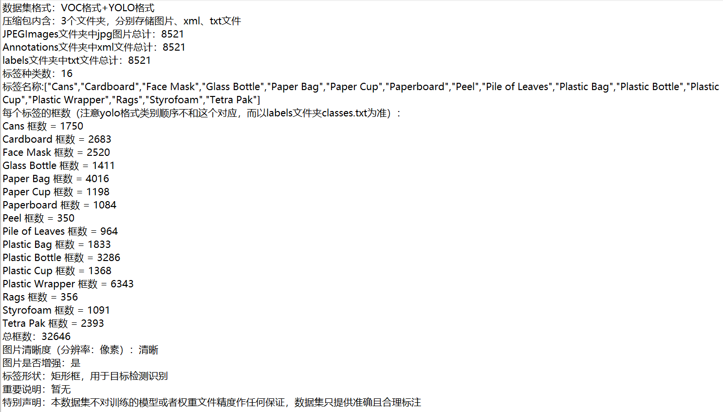 【目标检测】垃圾分类检测数据集8521张16类YOLO+VOC(已增强)