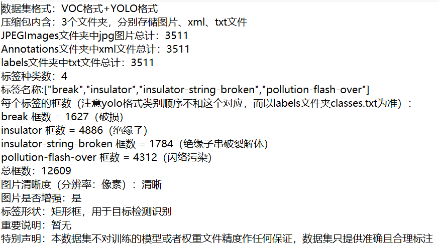 【目标检测】绝缘子缺陷数据集3511张4类标签YOLO+VOC格式