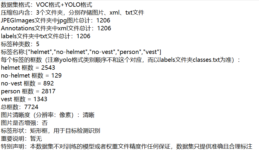 【目标检测】安全帽反光背心穿戴检测数据集1206张YOLO+VOC