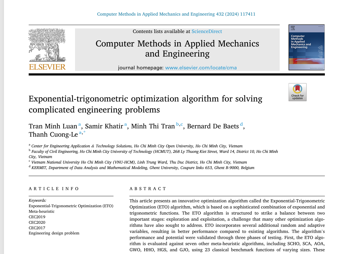 指数-三角优化(ETO)算法基于指数函数和三角函数的复杂组合。ETO算法的结构是为了在两个重要阶段之间取得平衡:探索和利用。ETO结合了几个额外的随机和自适应变量,通过三个阶段的测试验证了算法的性能和潜力。首先,使用23个不同大小的经典基准函数,将ETO算法与其他七种元启发式算法比较。接下来,ETO算法在CEC 2019和CEC 2020函数上进行了测试,并与上述7种算法进行了比较,以评估性能。此外,ETO算法在10维的CEC 2017基准函数上进行了测试,通过Wilcoxon秩和检验,将ETO算法与SHADE、LSHADE、JADE等算法进行了比较和评价,并将ETO算法应用于5个复杂的工程问题,包括机翼形状优化以增加升力,验证了ETO算法的有效性和潜力。结果表明,改进后的飞机机翼升力从0.797055提高到0.951817,具有良好的优化前景。