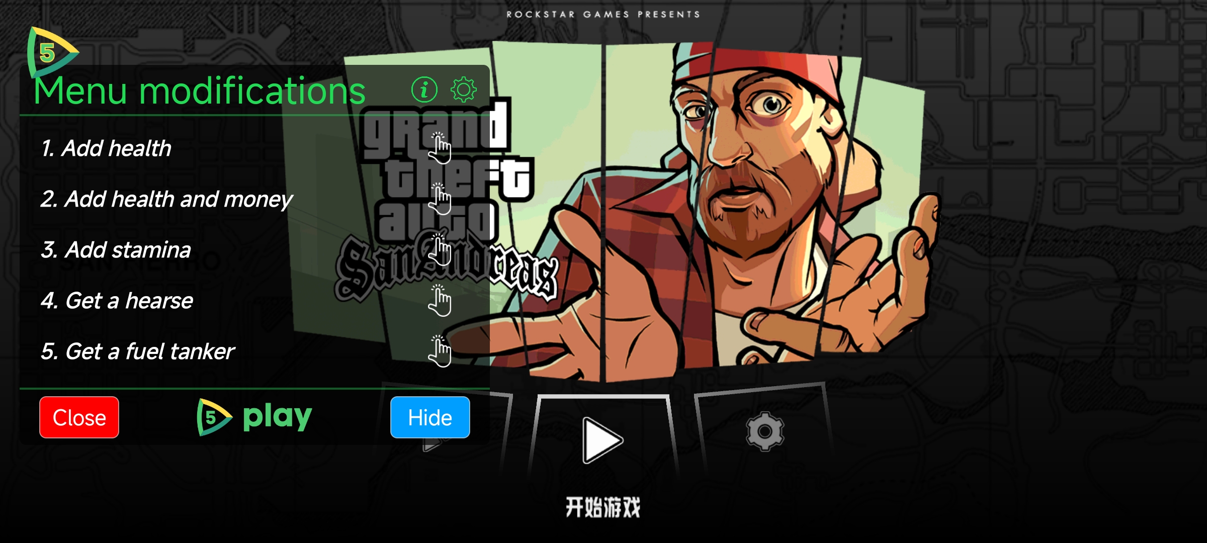 MOD2为:5play悬浮菜单作弊版(SA2.10汉化版)