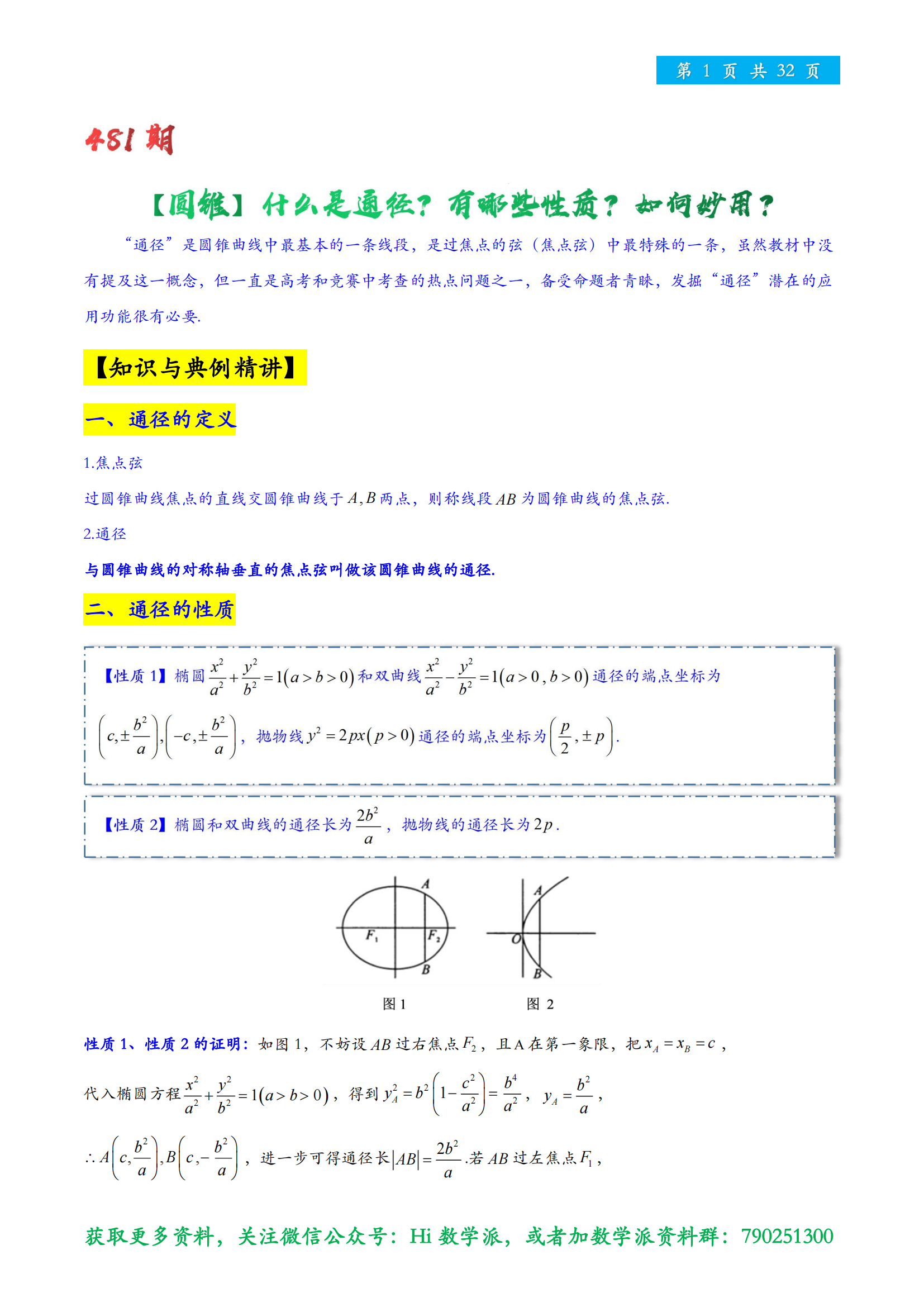481期【圆锥】什么是通径?有哪些性质?如何妙用?