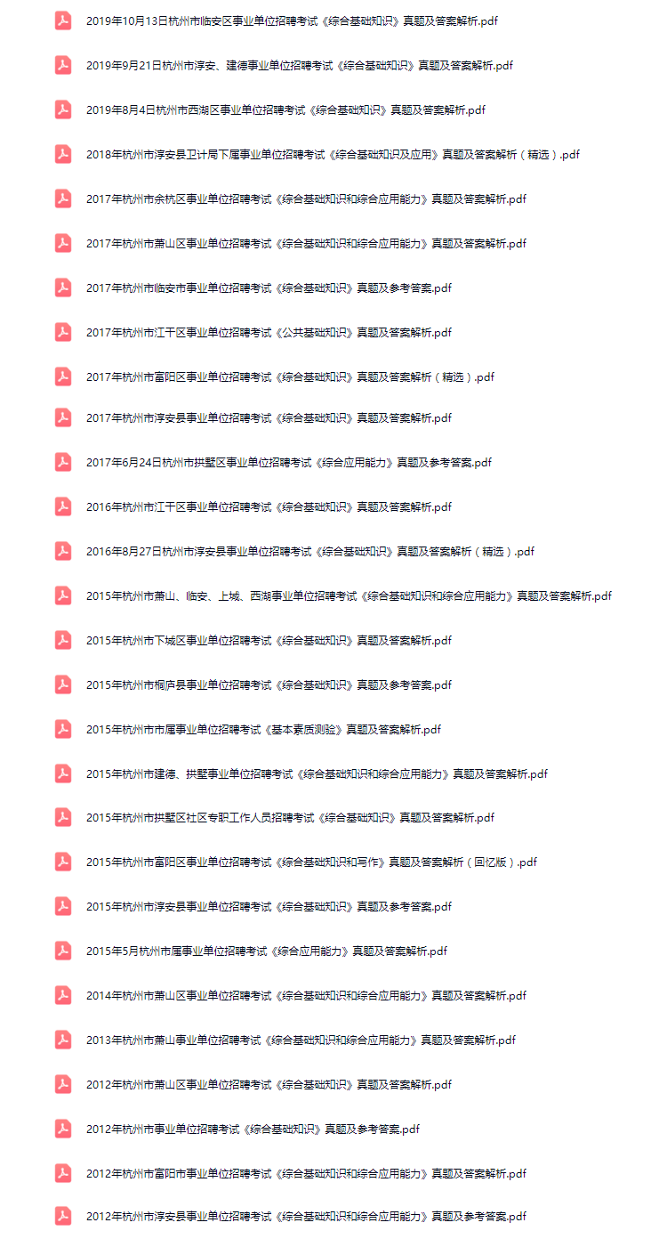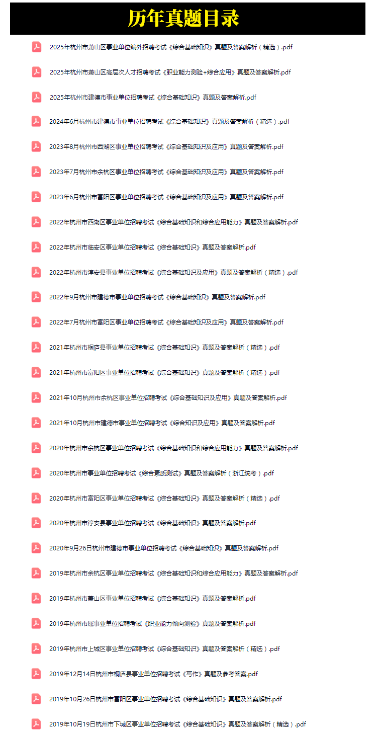 2012年-2025年杭州市事业单位招聘考试笔试真题54套