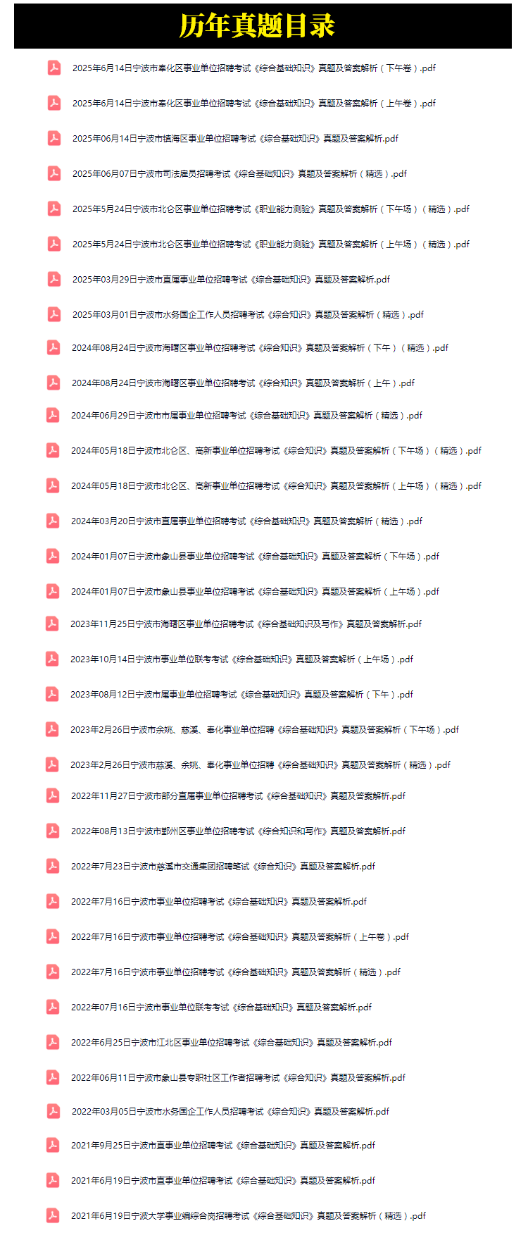 2013年-2025年宁波市事业单位招聘考试笔试历年真题86套(持续更新)